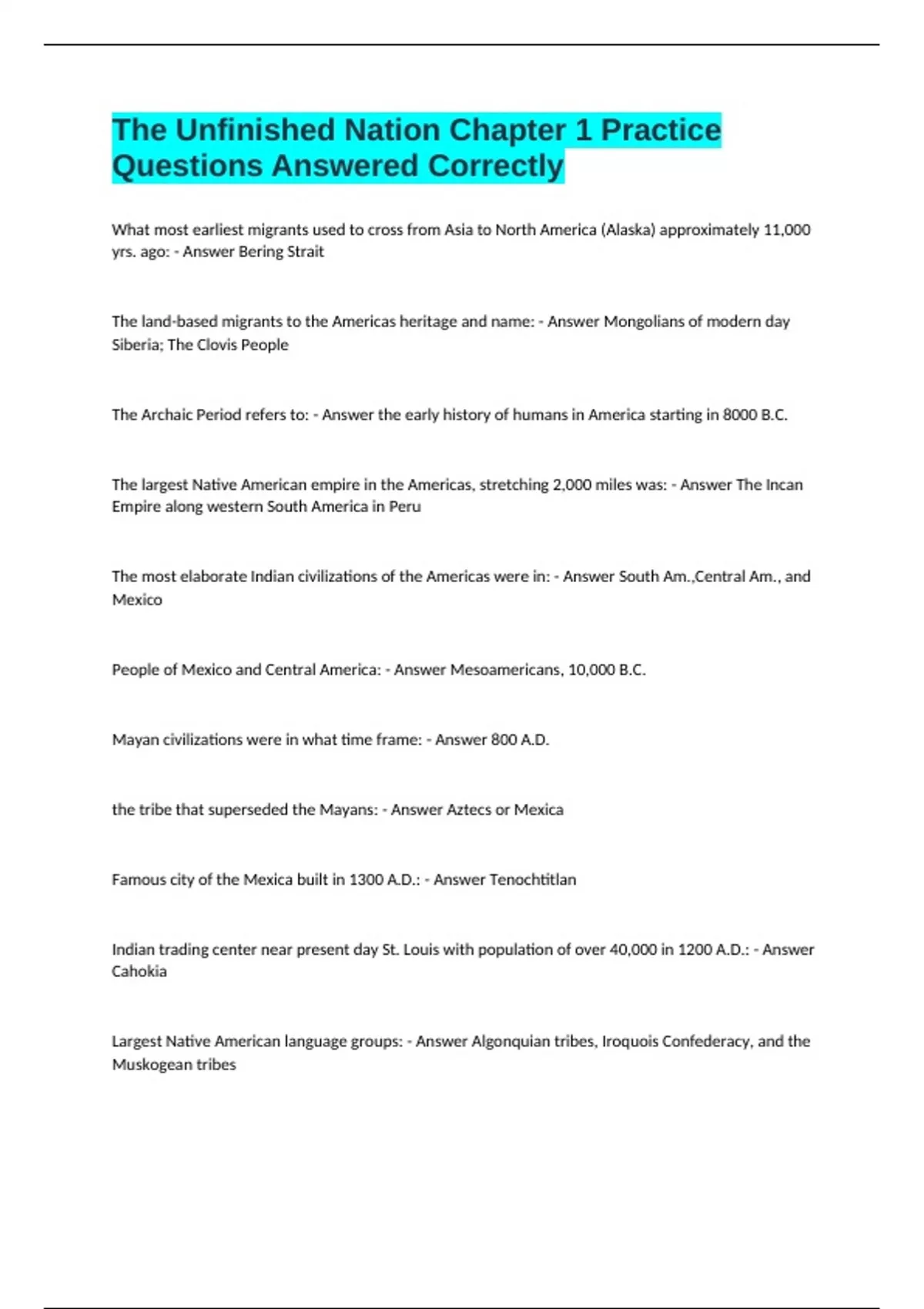 The Unfinished Nation Chapter 1 Practice Questions Answered Correctly