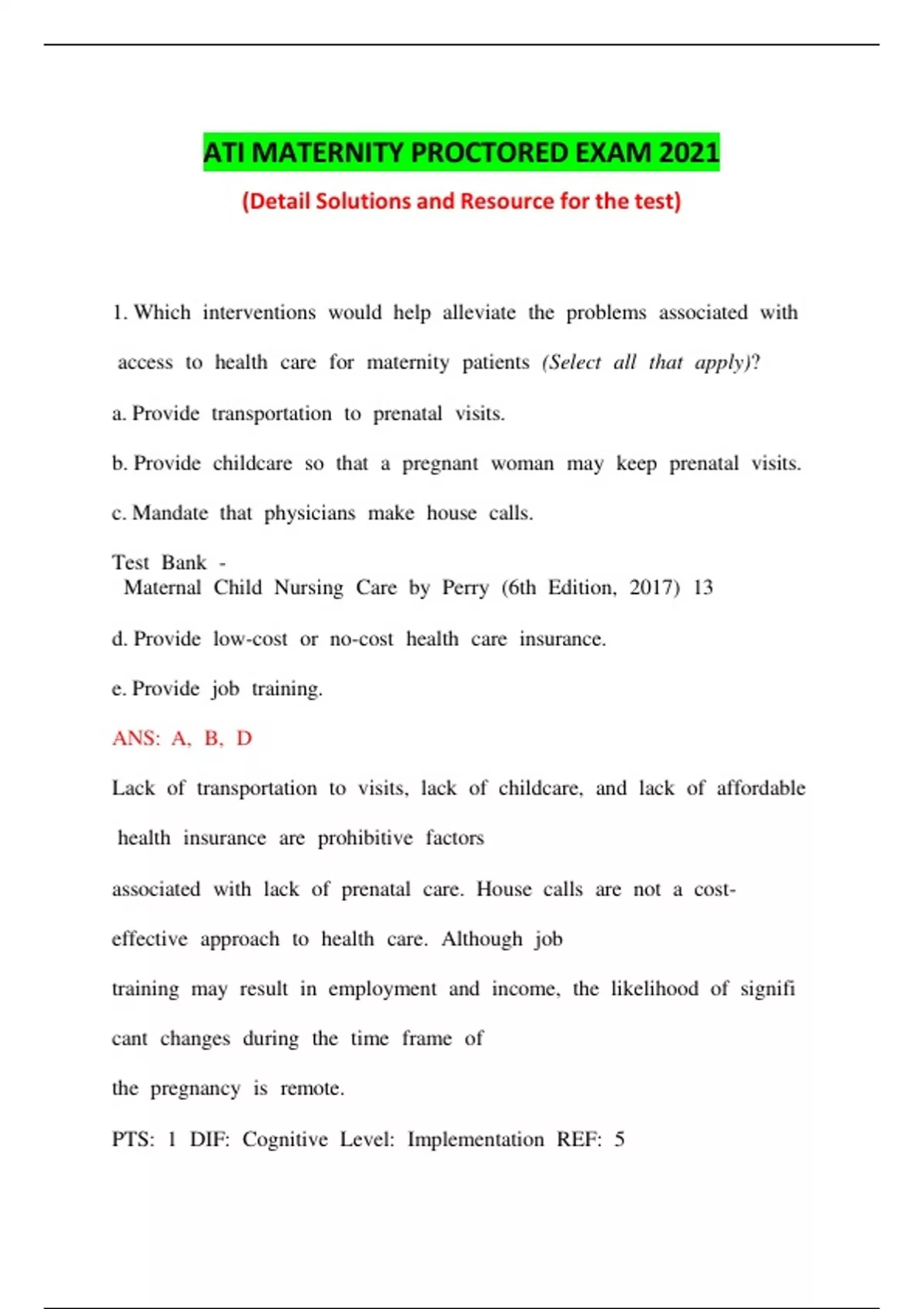 ATI MATERNITY PROCTORED EXAM 2021 (Detail Solutions and Resource for the test)