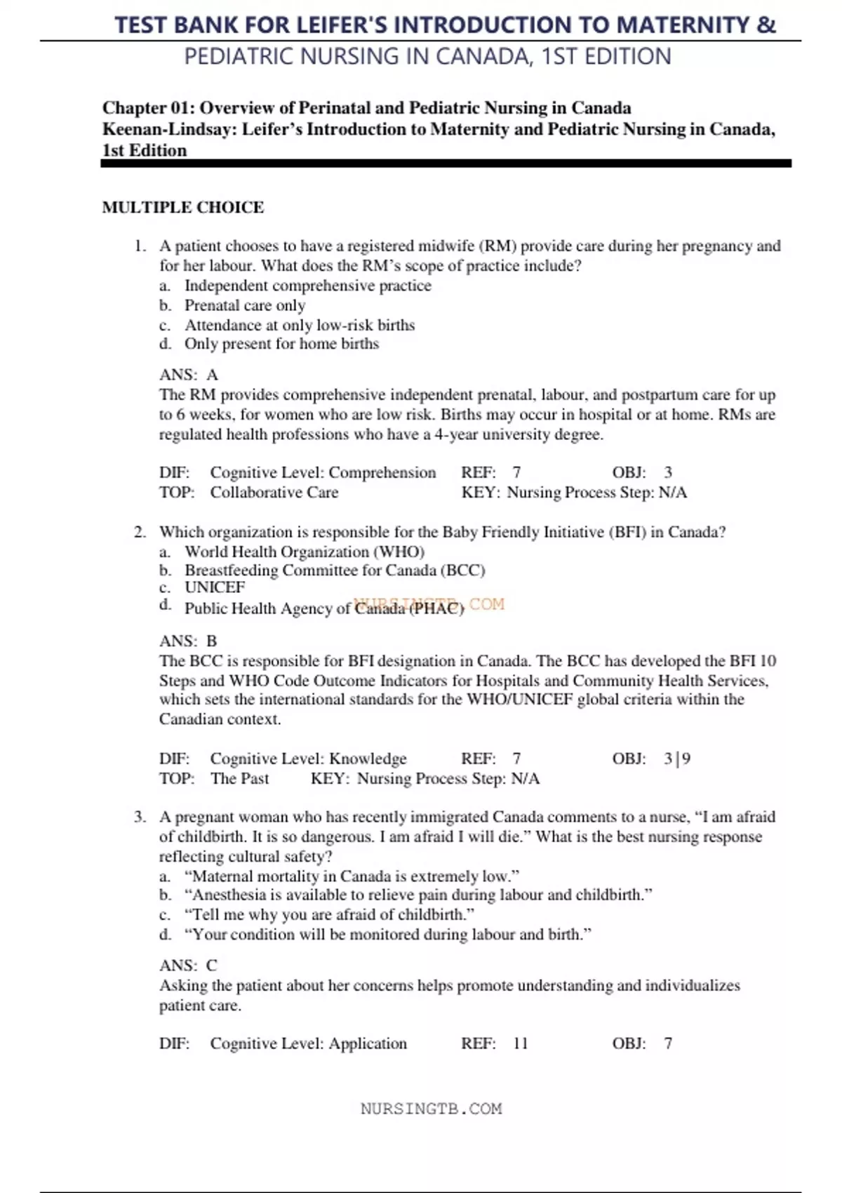 TEST BANK FOR LEIFER'S INTRODUCTION TO MATERNITY &