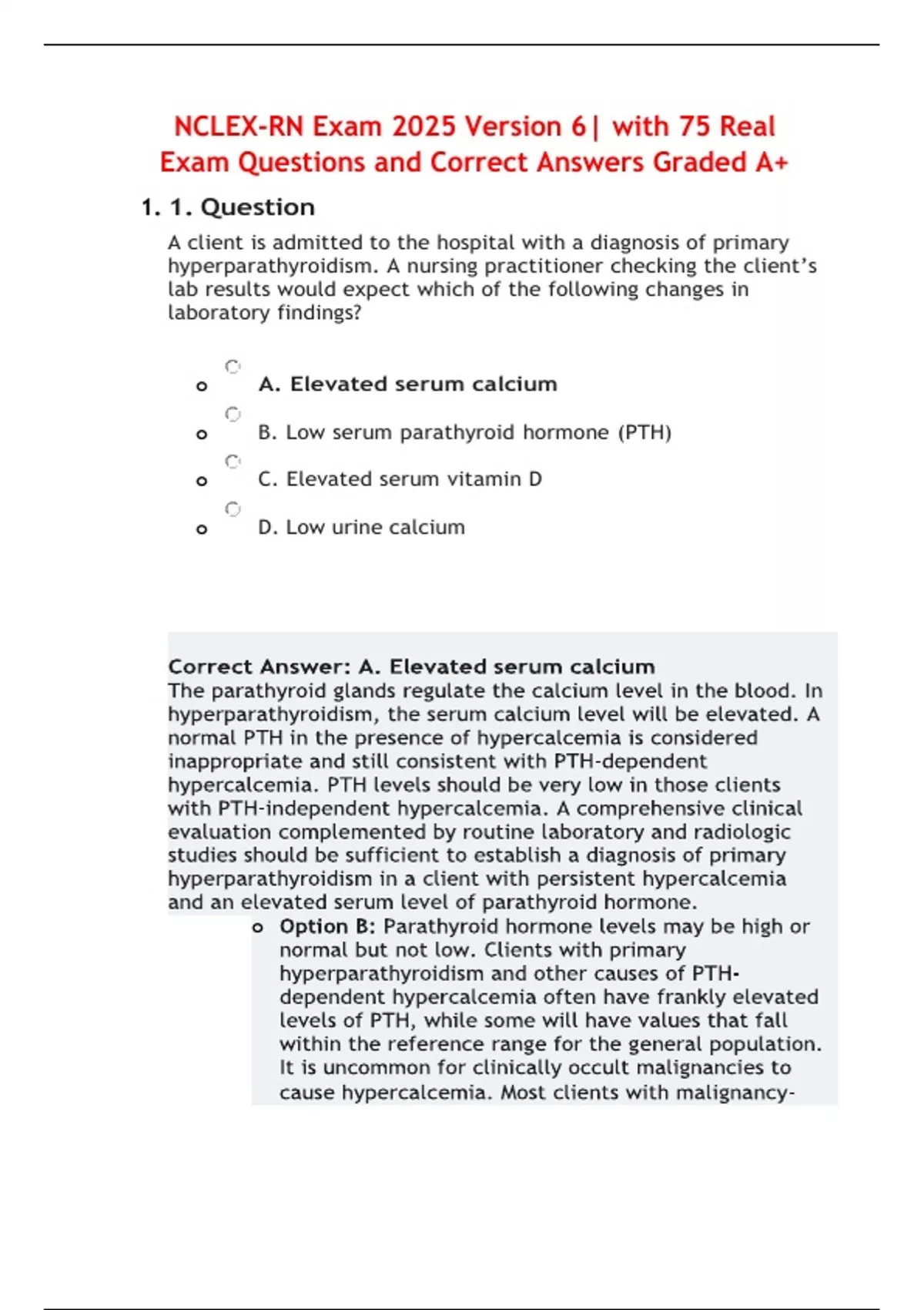 NCLEX-RN Exam 2025 Version 6| with 75 Real Exam Questions and Correct Answers Graded A+