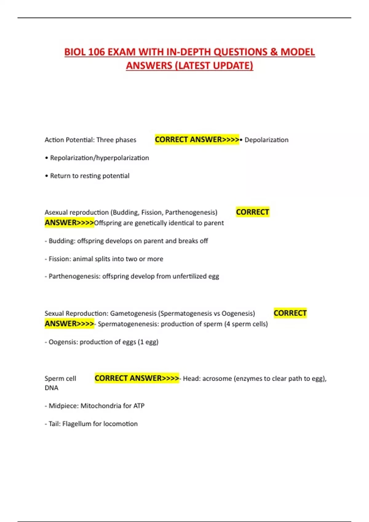 BIOL 106 EXAM WITH IN-DEPTH QUESTIONS & MODEL