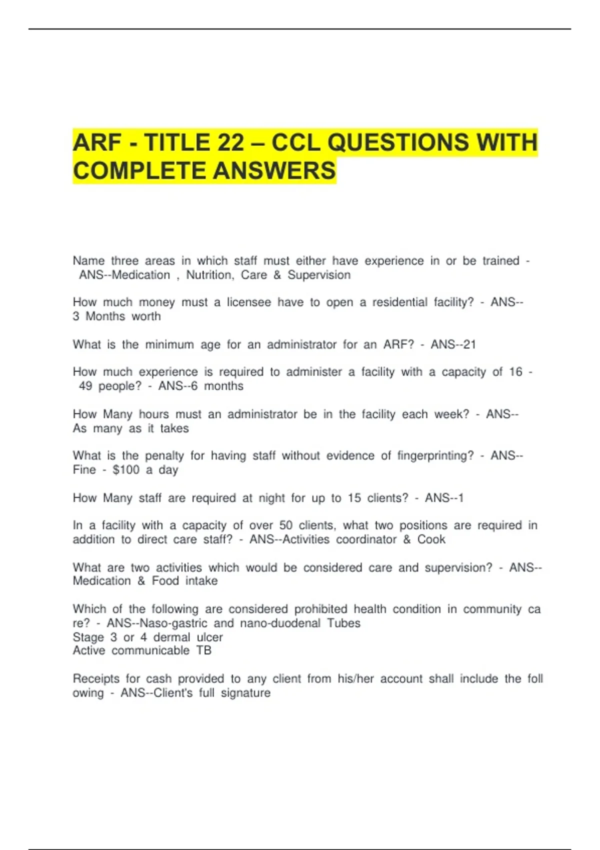 ARF - TITLE 22 – CCL QUESTIONS WITH