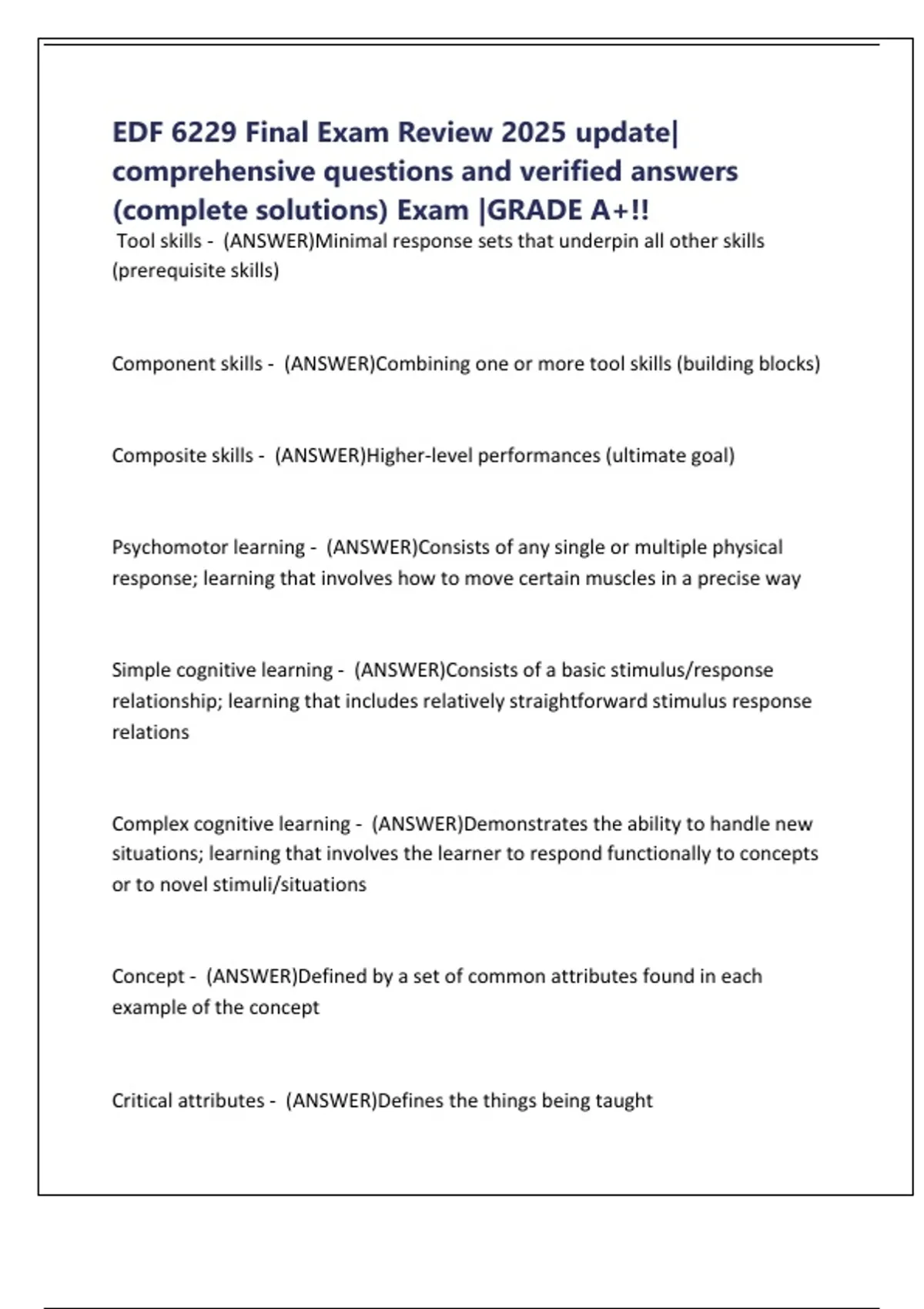 EDF 6229 Final Exam Review 2025 update| comprehensive questions and verified answers (complete solutions) Exam |GRADE A+!!