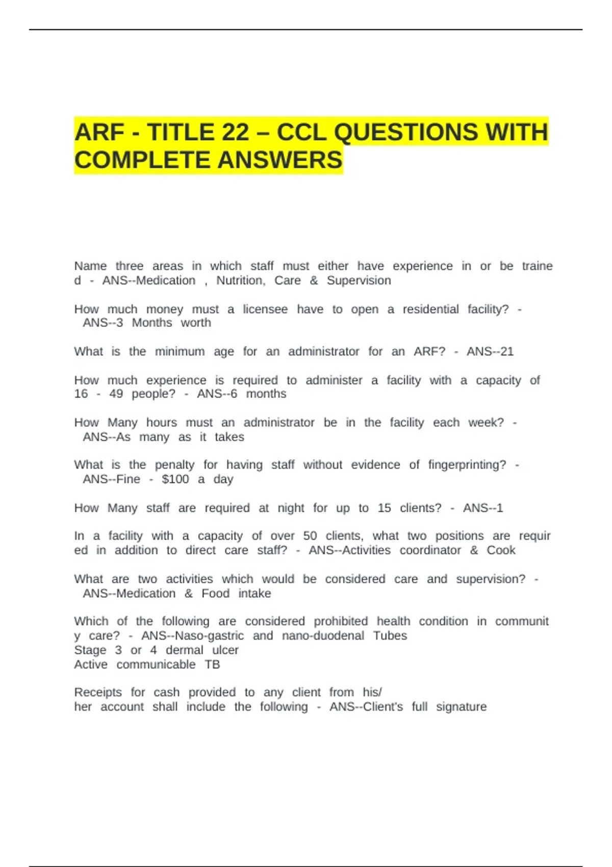 ARF - TITLE 22 – CCL QUESTIONS WITH