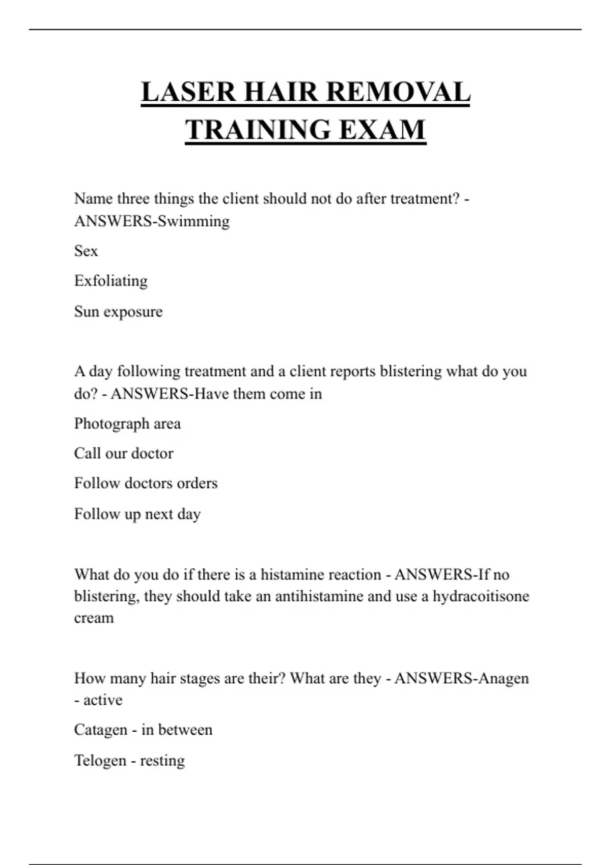LASER HAIR REMOVAL TRAINING EXAM QUESTIONS AND ANSWERS 2025