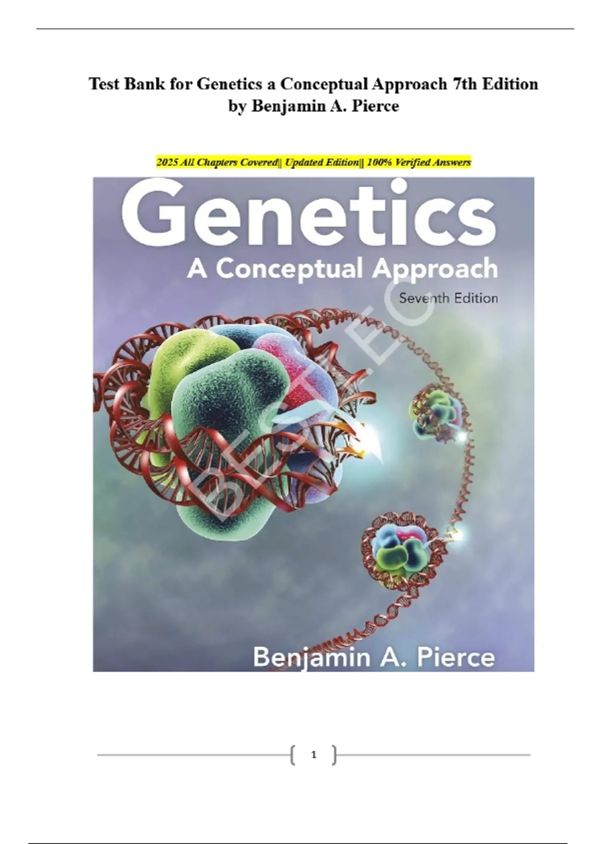 Test Bank for Genetics a Conceptual Approach 7th Edition by Benjamin A. Pierce 2025 All Chapters Covered|| Updated Edition|| 100% Verified Answers