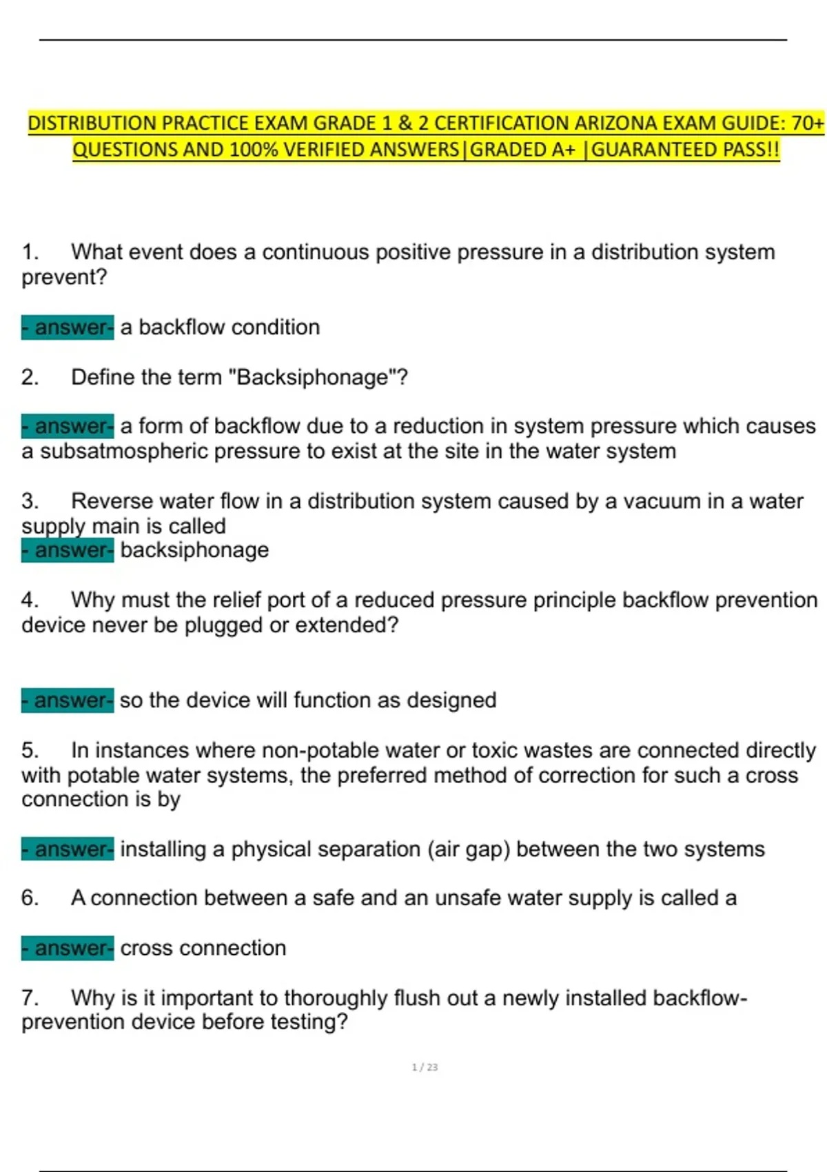 - answer- backsiphonage