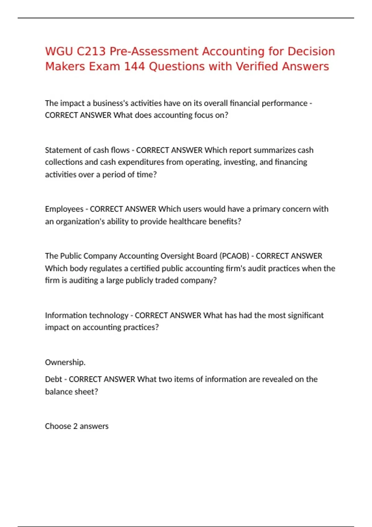 Debt - CORRECT ANSWER What two items of information are revealed on the