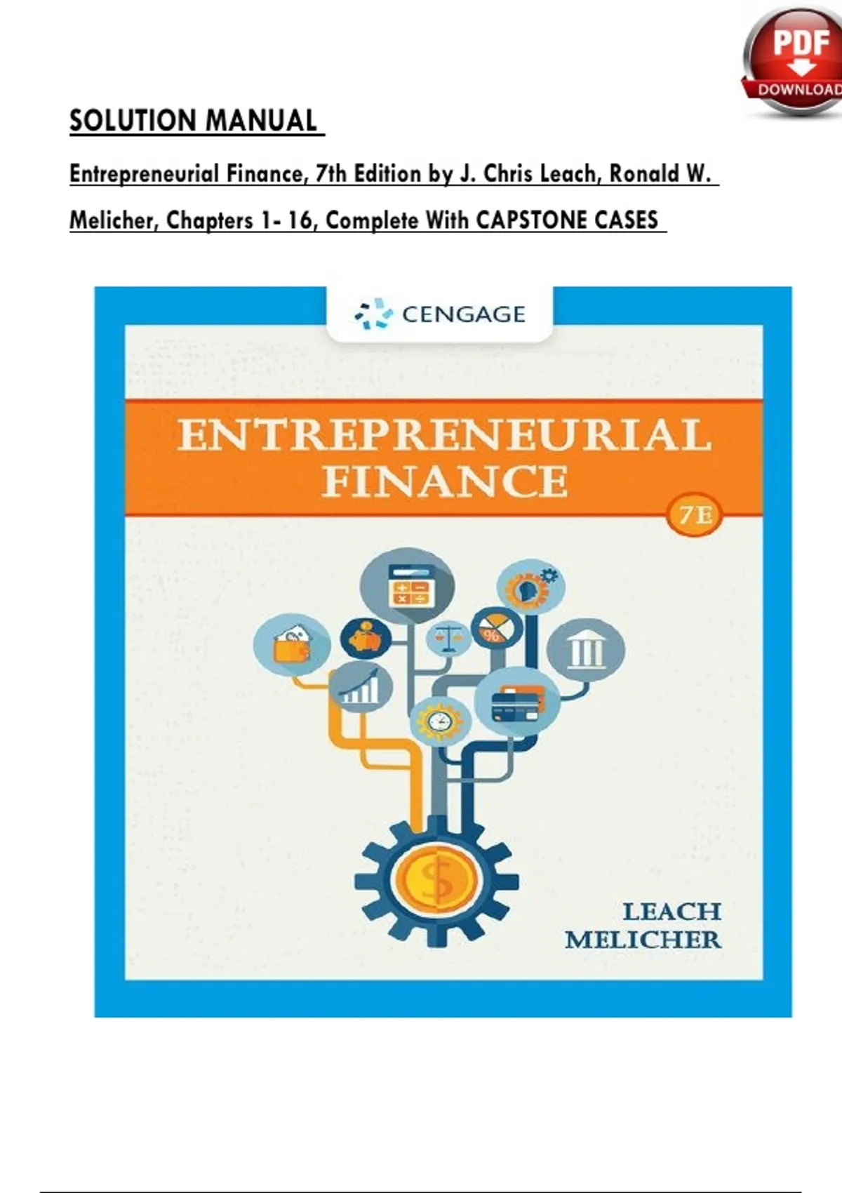 SOLUTION MANUAL For Entrepreneurial Finance, 7th Edition by J. Chris Leach, Ronald W. Melicher, Chapters 1 - 16, Complete With CAPSTONE CASES