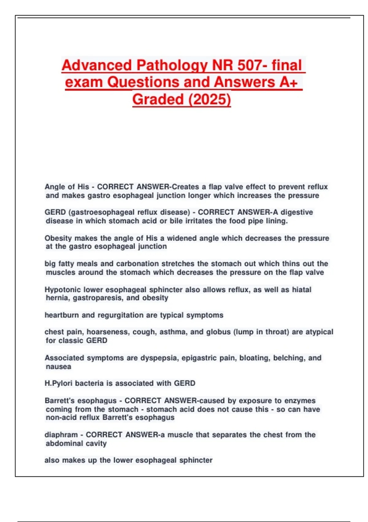 Advanced Pathology NR 507- final exam Questions and Answers A+ Graded (2025).