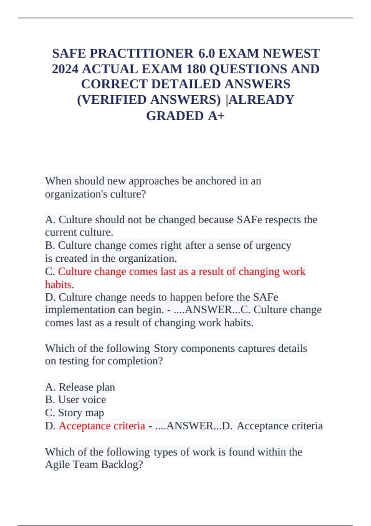 D. Acceptance criteria - ....ANSWER...D. Acceptance criteria