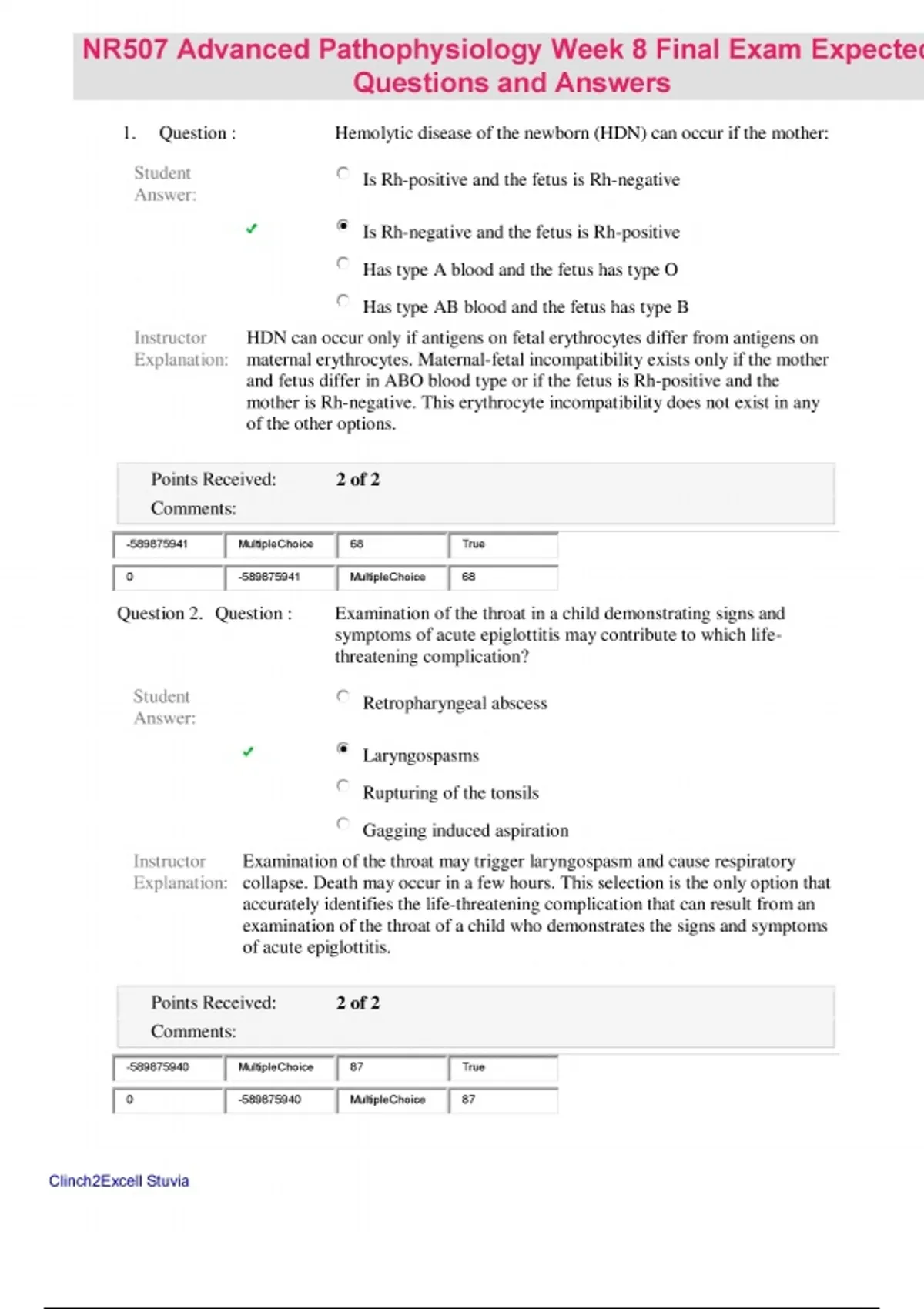 NR507 Advanced Pathophysiology Week 8 Final Exam () Expected Questions and Answers
