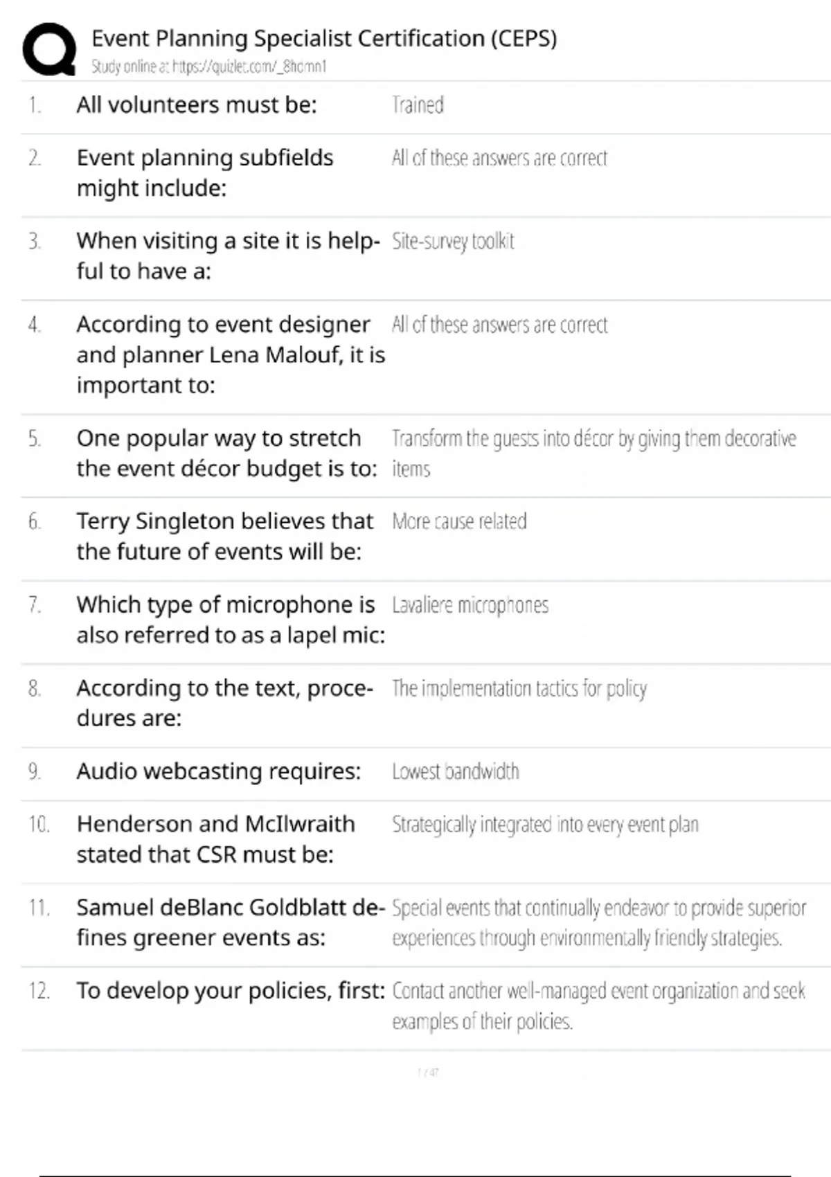 Event Planning Specialist Certification / CEPS Exam / 2025 Practice Test / Score 100%