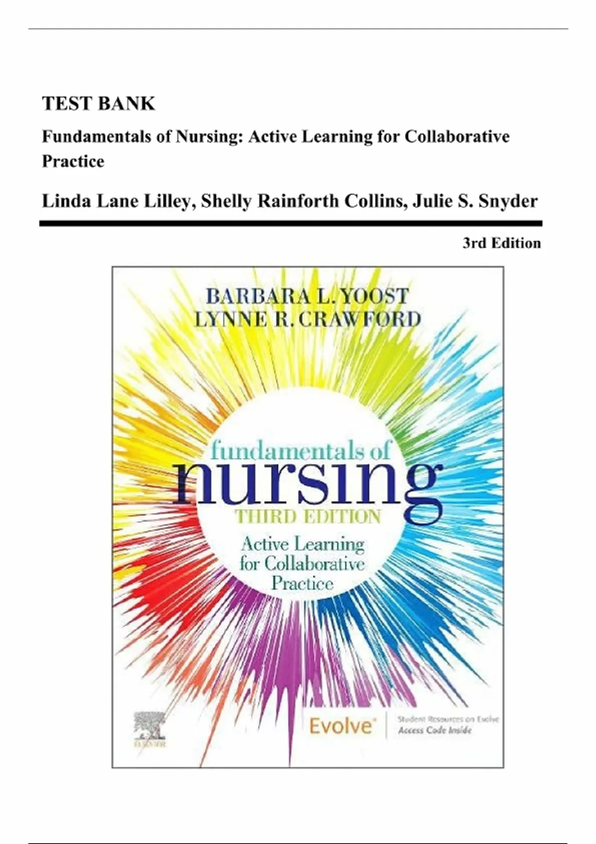 Test Bank - Fundamentals of Nursing: Active Learning for Collaborative Practice, 3rd Edition (Yoost, 2023), Chapter 1-42| With Complete Solutions Chapter 01: Nursing, Theory, and Professional Practice Chapter 02: Values, Beliefs, and Caring Chapter 03: Communication Chapter 04: Critical Thinking in Nursing Chapter 05: Introduction to the Nursing Process Chapter 06: Assessment Chapter 07: Nursing Diagnosis Chapter 08: Planning Chapter 09: Implementation and Evaluation Chapter 10: Documentation, Electronic Health Records, and Reporting Chapter 11: Ethical and Legal Considerations Chapter 12: Leadership and Management Chapter 13: Evidence-Based Practice and Nursing Research Chapter 14: Health Literacy and Patient Education Chapter 15: Nursing Informatics Chapter 16: Health and Wellness Chapter 17: Human Development: Conception Through Adolescence Chapter 18: Human Development: Young Adult Through Older Adult Chapter 19: Vital Signs Chapter 20: Health History and Physical Assessment Chapter 21: Ethnicity and Cultural Assessment Chapter 22: Spiritual Health Chapter 23: Public Health, Community-Based, and Home Health Care Chapter 24: Human Sexuality Chapter 25: Safety Chapter 26: Asepsis and Infection Control Chapter 27: Hygiene and Personal Care Chapter 28: Activity, Immobility, and Safe Movement Chapter 29: Skin Integrity and Wound Care Chapter 30: Nutrition Chapter 31: Cognitive and Sensory Alterations Chapter 32: Stress and Coping Chapter 33: Sleep Chapter 34: Diagnostic Testing Chapter 35: Medication Administration Chapter 36: Pain Management Chapter 37: Perioperative Nursing Care Chapter 38: Oxygenation and Tissue Perfusion Chapter 39: Fluid, Electrolytes, and Acid-Base Balance Chapter 40: Bowel Elimination Chapter 41: Urinary Elimination Chapter 42: Death and Loss