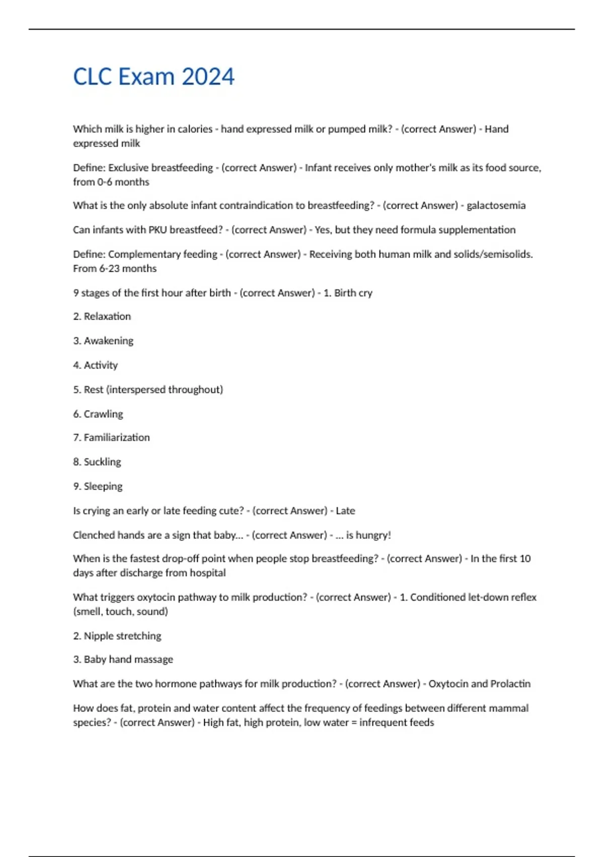 9 stages of the first hour after birth - (correct Answer) - 1. Birth cry