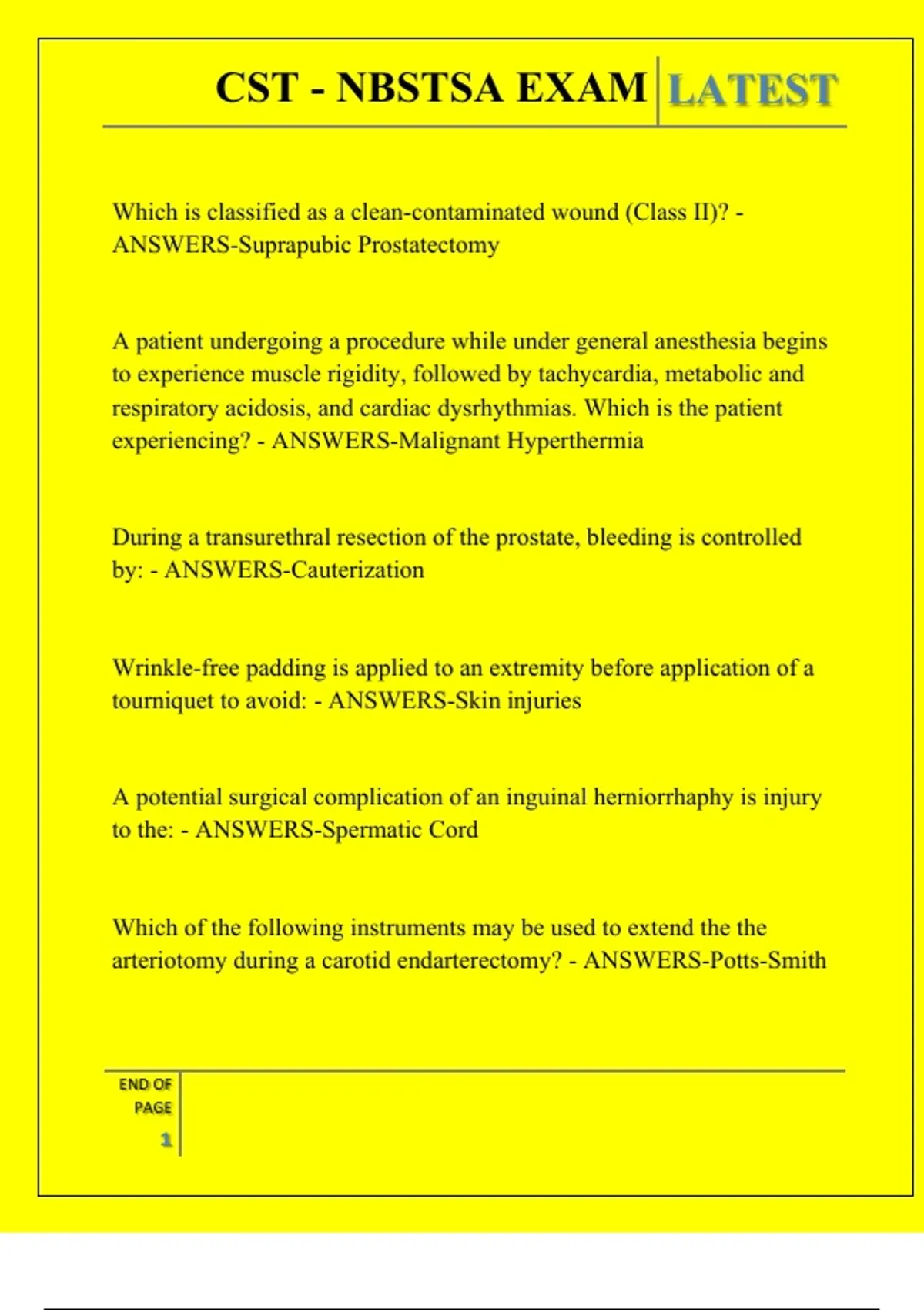 CST - NBSTSA EXAM QUESTIONS AND ANSWERS 2025