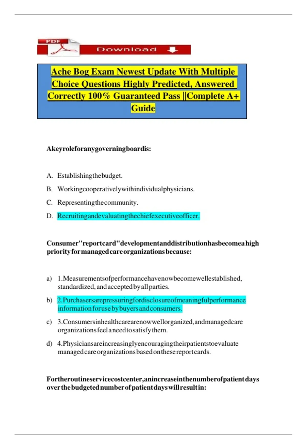 Choice Questions Highly Predicted, Answered