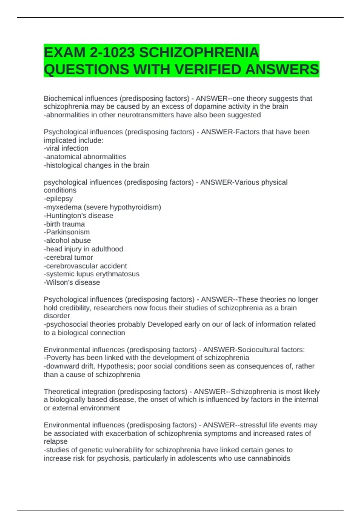 Theoretical integration (predisposing factors) - ANSWER--Schizophrenia is most likely