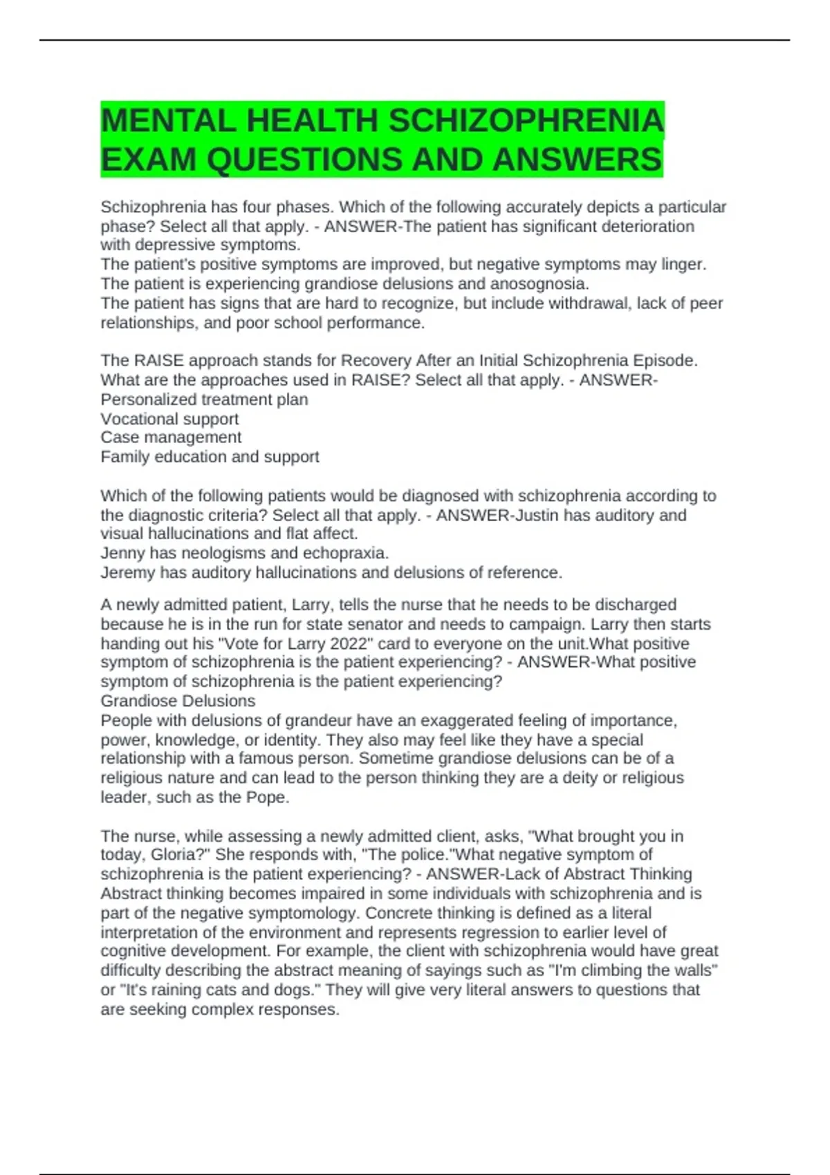 symptom of schizophrenia is the patient experiencing? - ANSWER-What positive