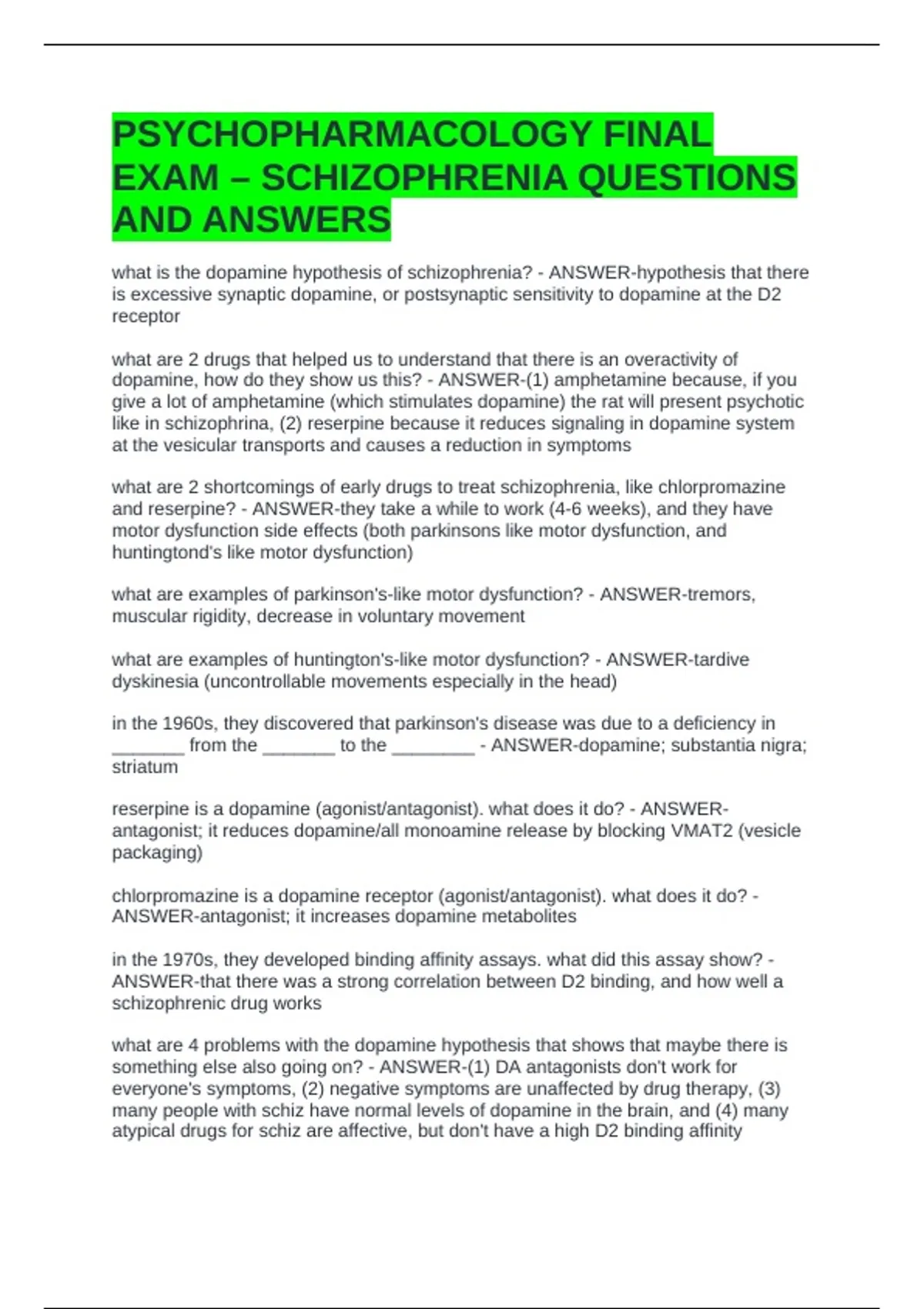 EXAM – SCHIZOPHRENIA QUESTIONS