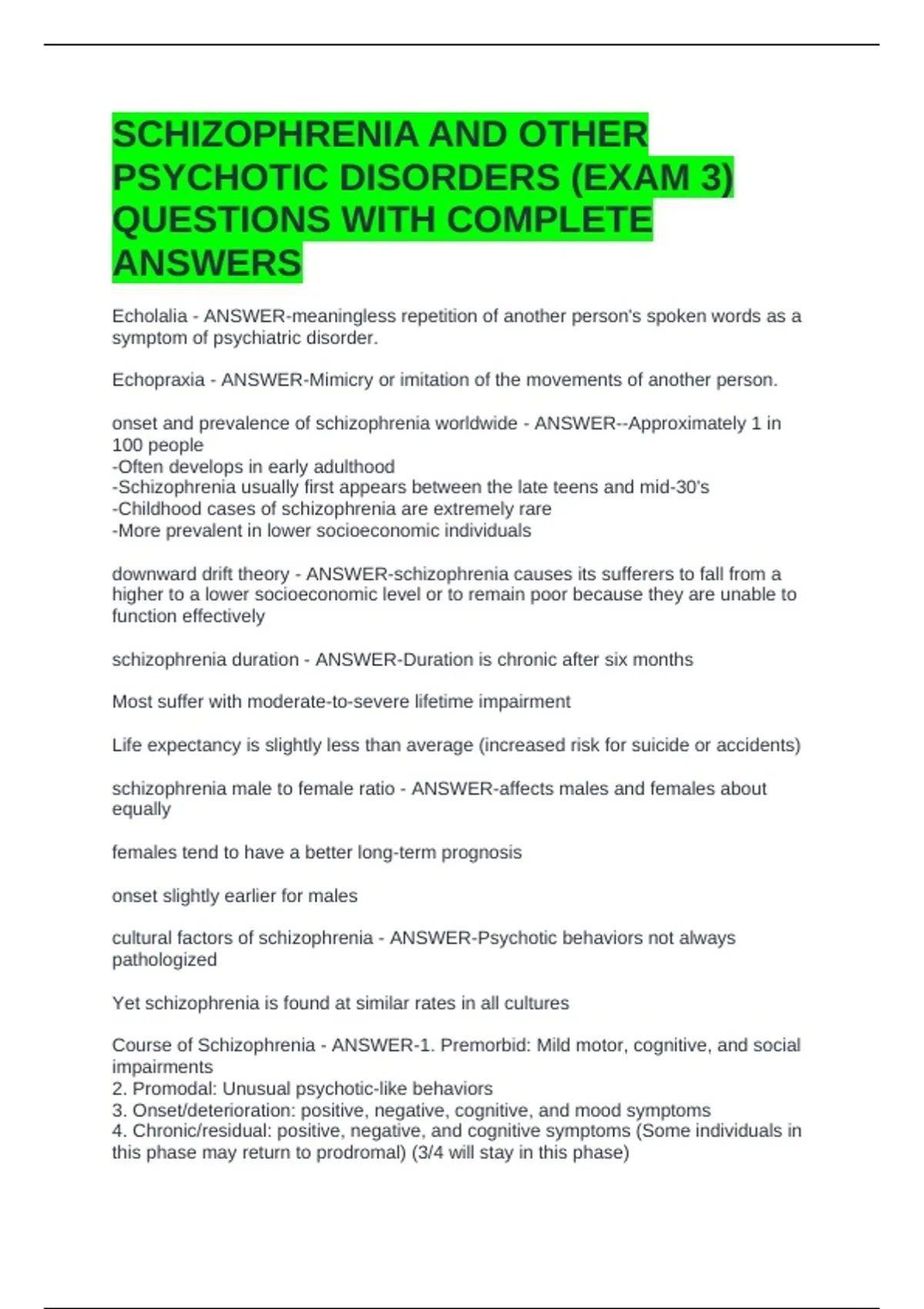 onset and prevalence of schizophrenia worldwide - ANSWER--Approximately 1 in