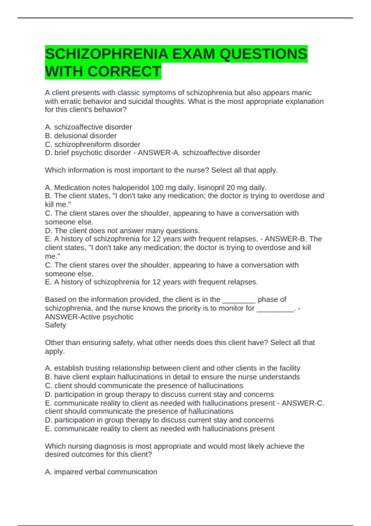E. A history of schizophrenia for 12 years with frequent relapses. - ANSWER-B. The
