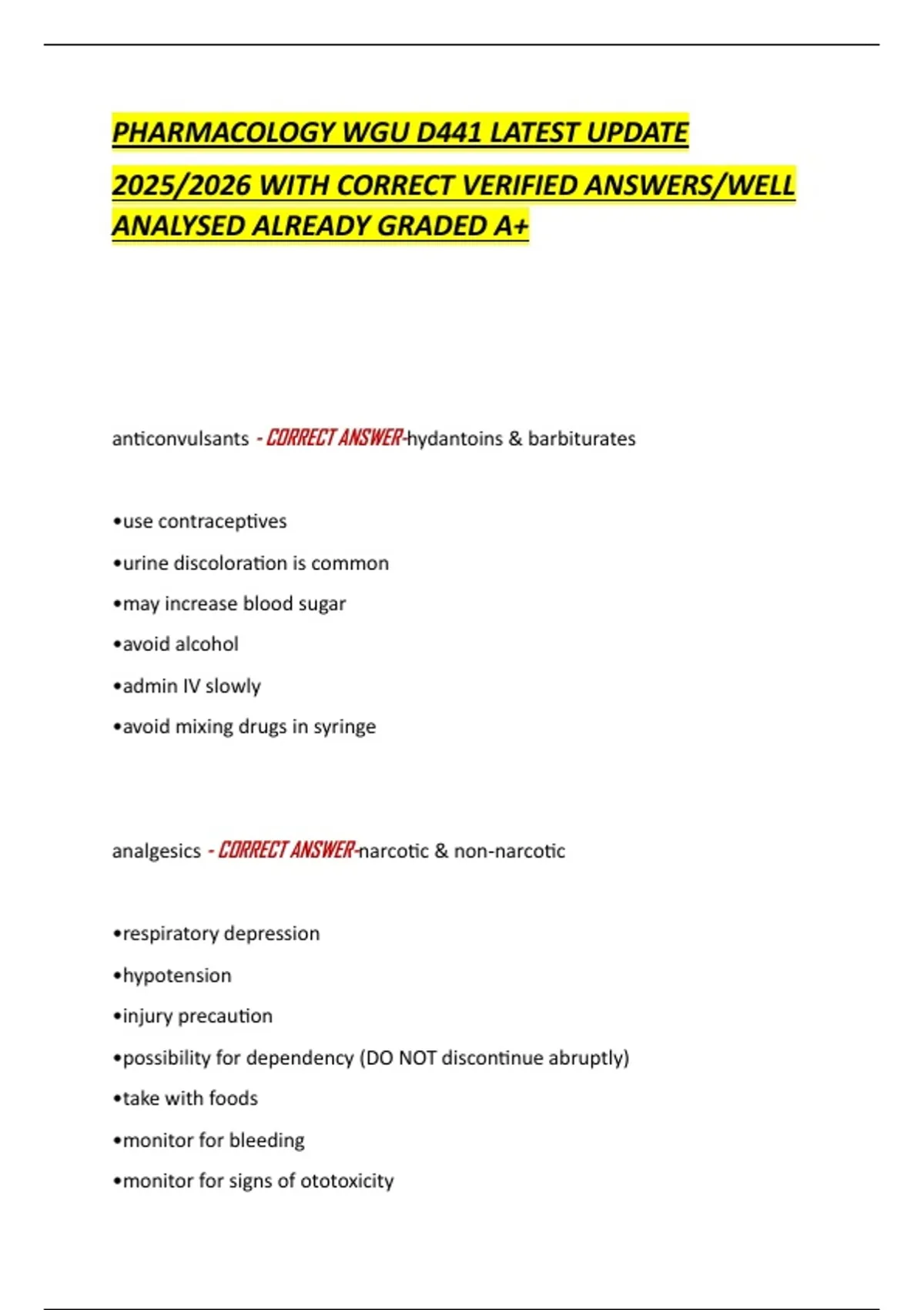 PHARMACOLOGY WGU D441 LATEST UPDATE