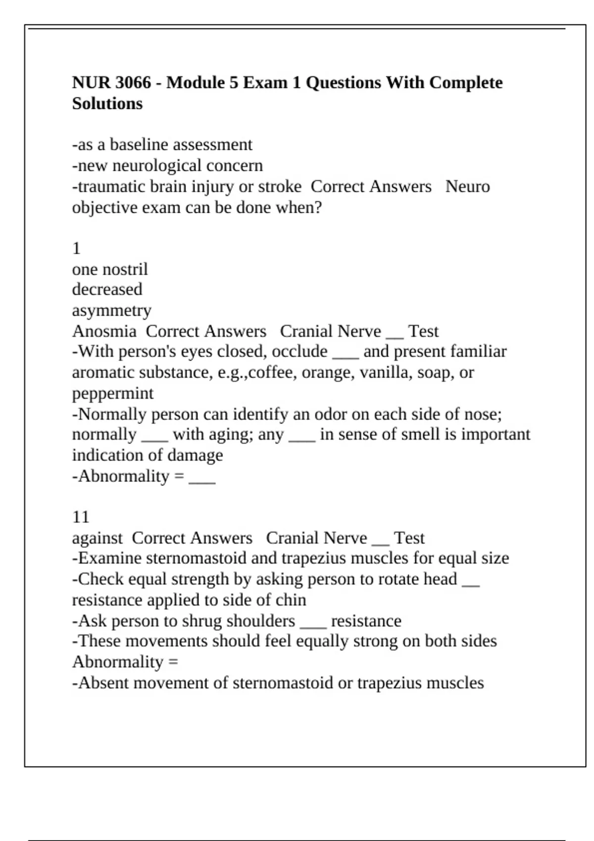 Anosmia Correct Answers Cranial Nerve __ Test
