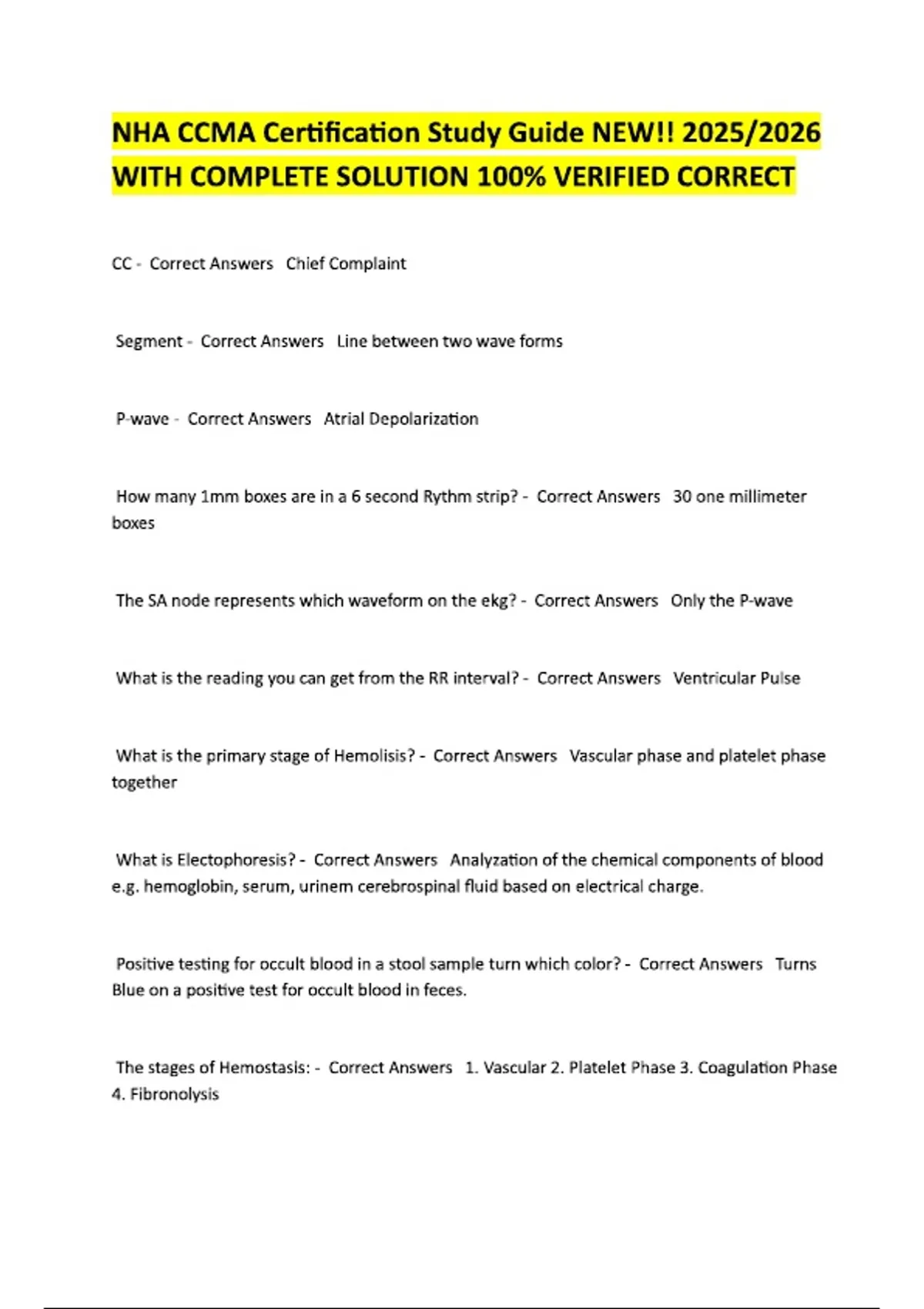 NHA CCMA Certification Study Guide NEW!! 2025/2026 WITH COMPLETE SOLUTION 100% VERIFIED CORRECT NHA CCMA Certification Study Guide NEW!! 2025/2026 WITH COMPLETE SOLUTION 100% VERIFIED CORRECT NHA CCMA Certification Study Guide NEW!! 2025/2026 WITH COMPLETE SOLUTION 100% VERIFIED CORRECT NHA CCMA Certification Study Guide NEW!! 2025/2026 WITH COMPLETE SOLUTION 100% VERIFIED CORRECT NHA CCMA Certification Study Guide NEW!! 2025/2026 WITH COMPLETE SOLUTION 100% VERIFIED CORRECT NHA CCMA Certification Study Guide NEW!! 2025/2026 WITH COMPLETE SOLUTION 100% VERIFIED CORRECT