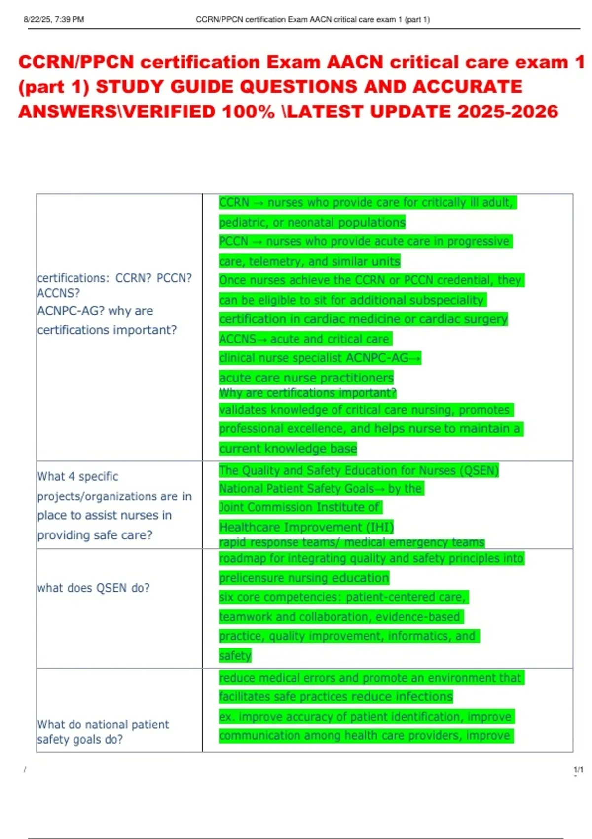 , 8/22/25, 7:39 PM CCRN/PPCN certification Exam AACN critical care exam 1 (part 1)