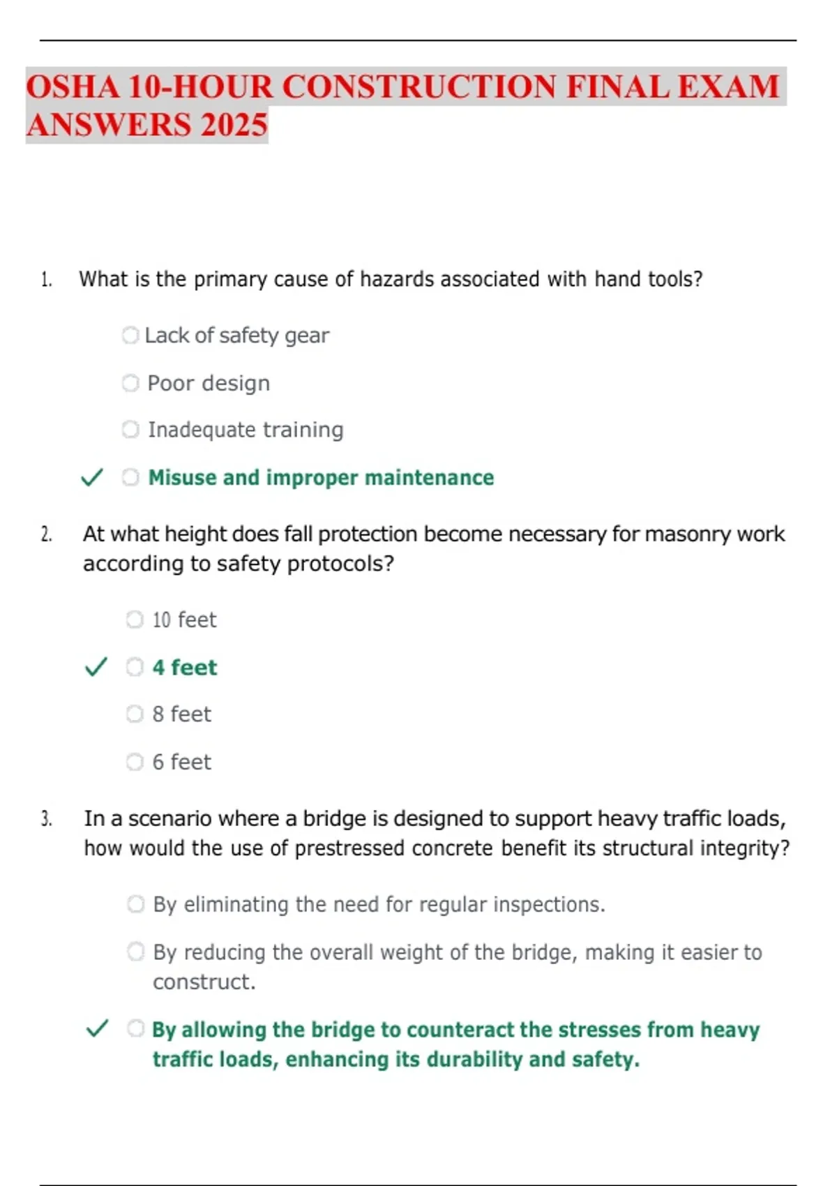 OSHA 10-HOUR CONSTRUCTION FINAL EXAM ANSWERS 2025