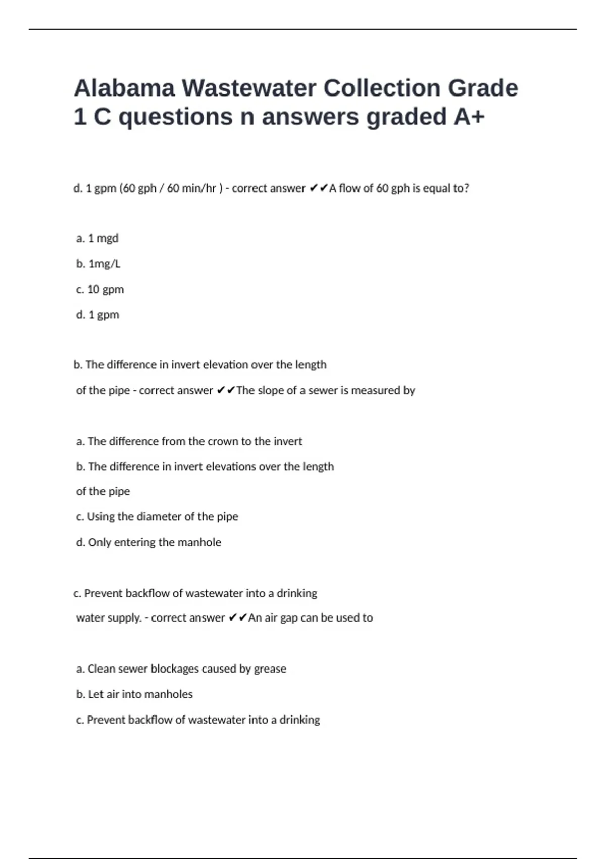 d. 1 gpm (60 gph / 60 min/hr ) - correct answer ✔✔A flow of 60 gph is equal to?