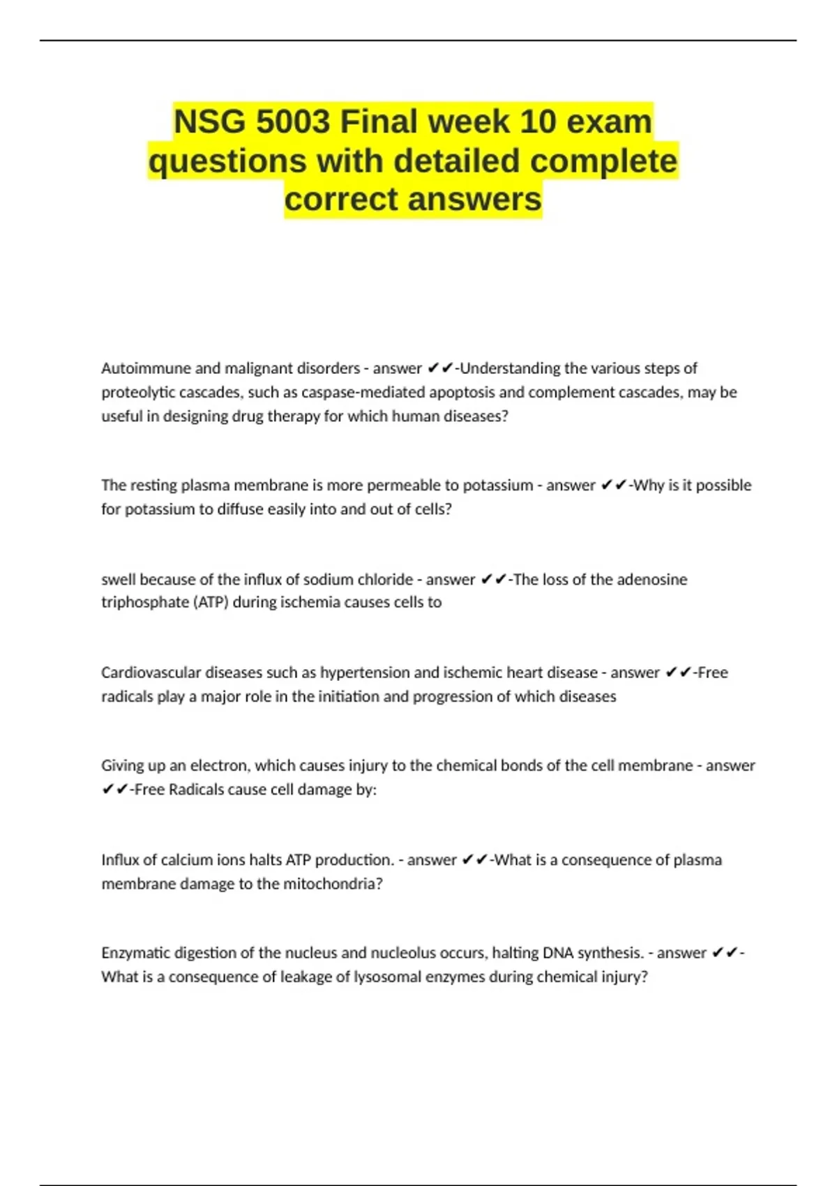 levels. - answer ✔✔-During cell injury caused by hypoxia, sodium and water move into the cell
