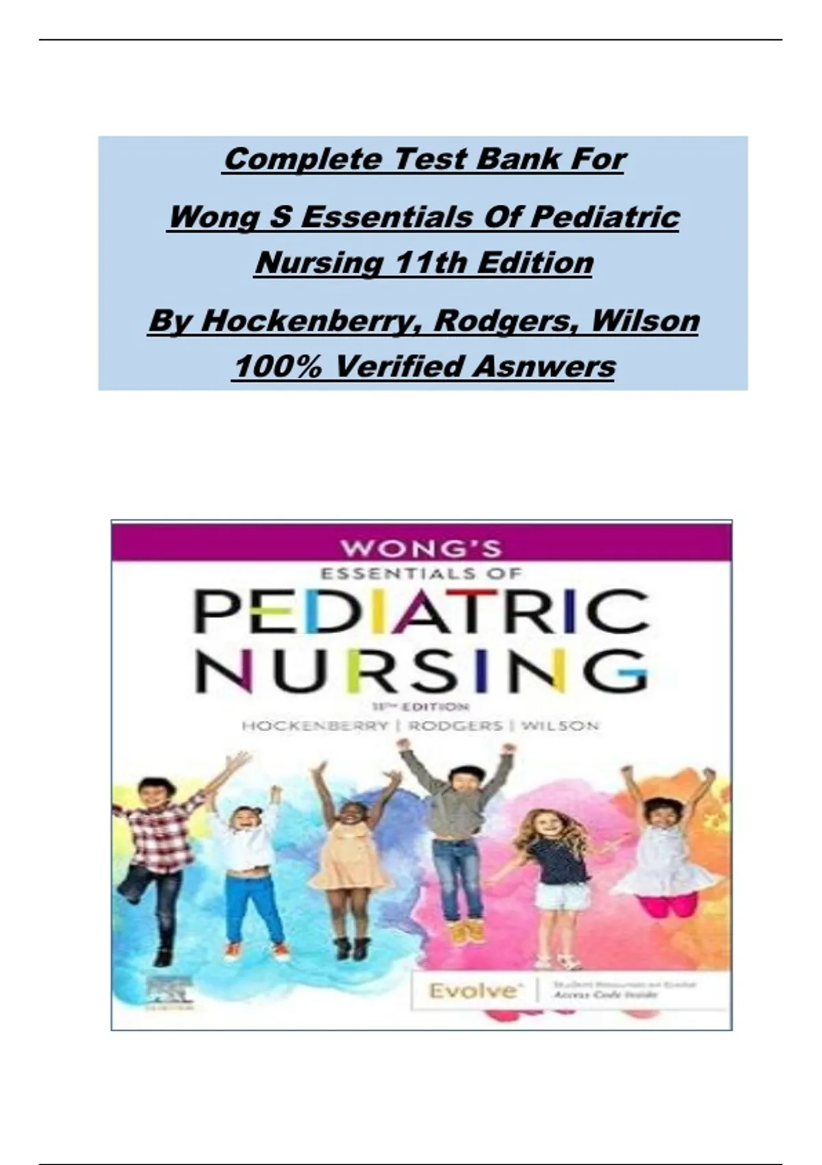 Complete Test Bank For Wong S Essentials Of Pediatric Nursing 11th Edition By Hockenberry, Rodgers, Wilson 100% Verified Asnwers Complete Test Bank For Wong S Essentials Of Pediatric Nursing 11th Edition By Hockenberry, Rodgers, Wilson 100% Verified Asnwers