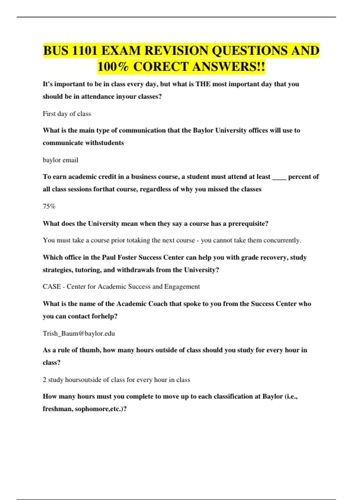 BUS 1101 EXAM REVISION QUESTIONS AND 100% CORECT ANSWERS