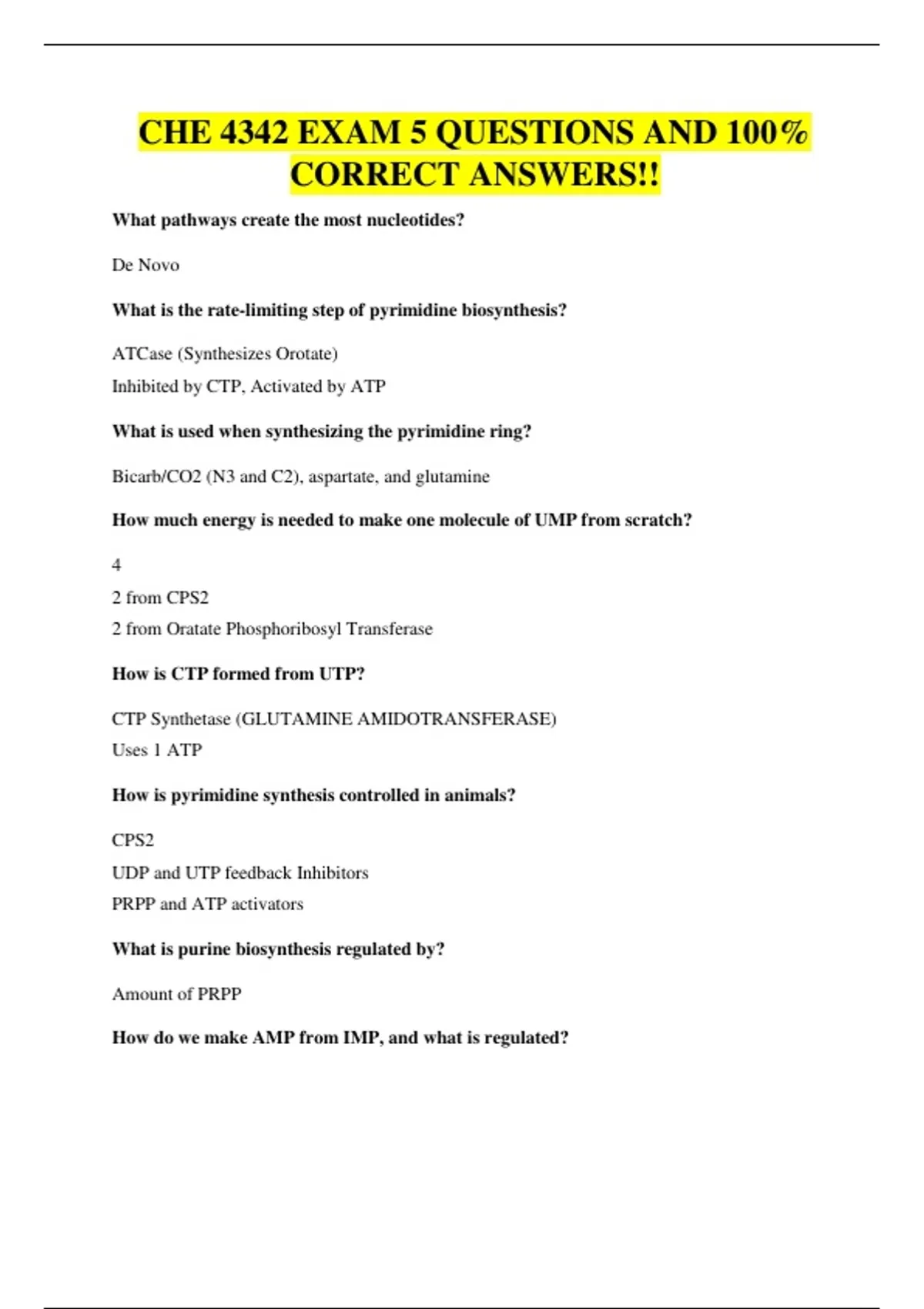 CHE 4342 EXAM 5 QUESTIONS AND 100%