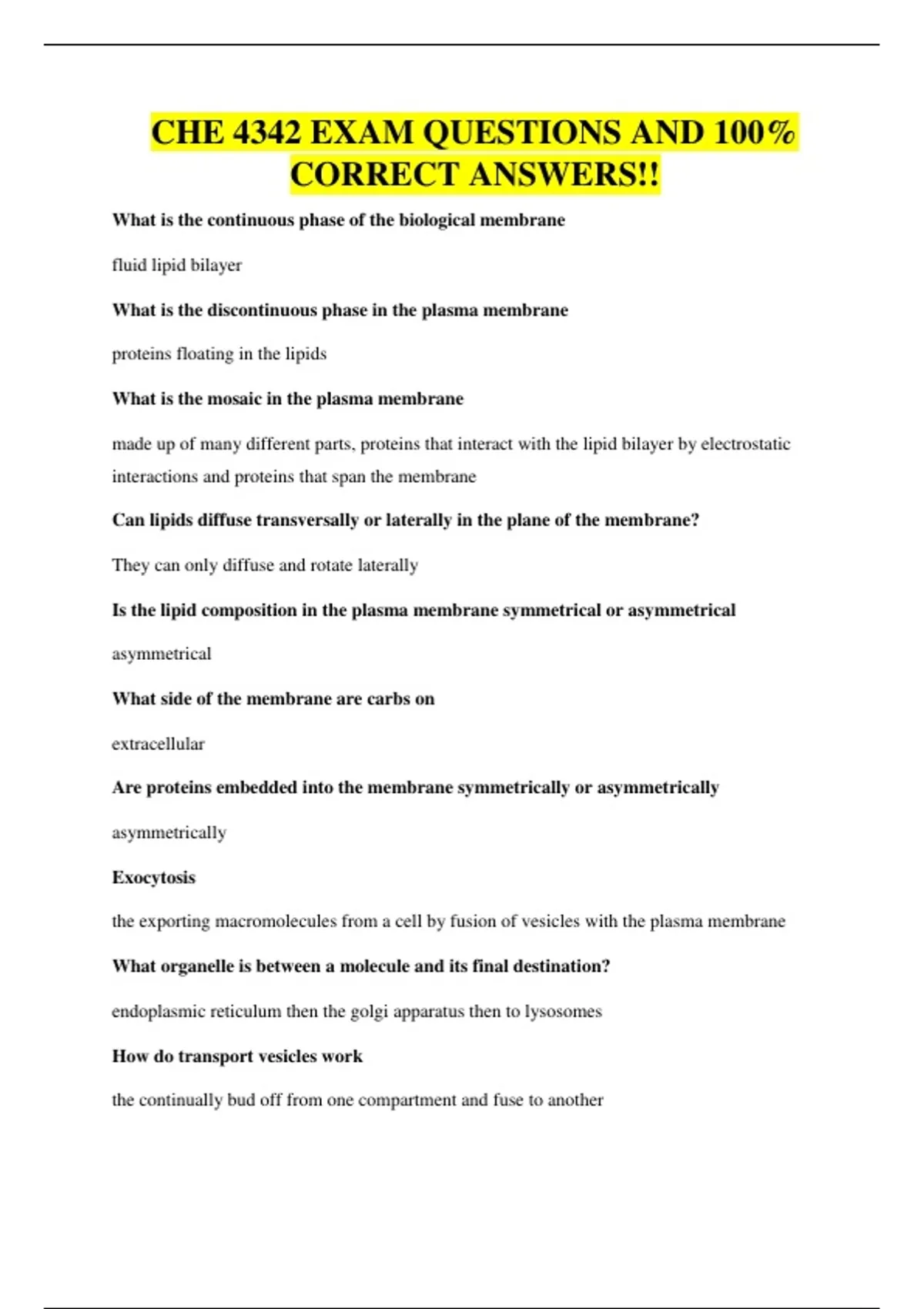 CHE 4342 EXAM QUESTIONS AND 100%