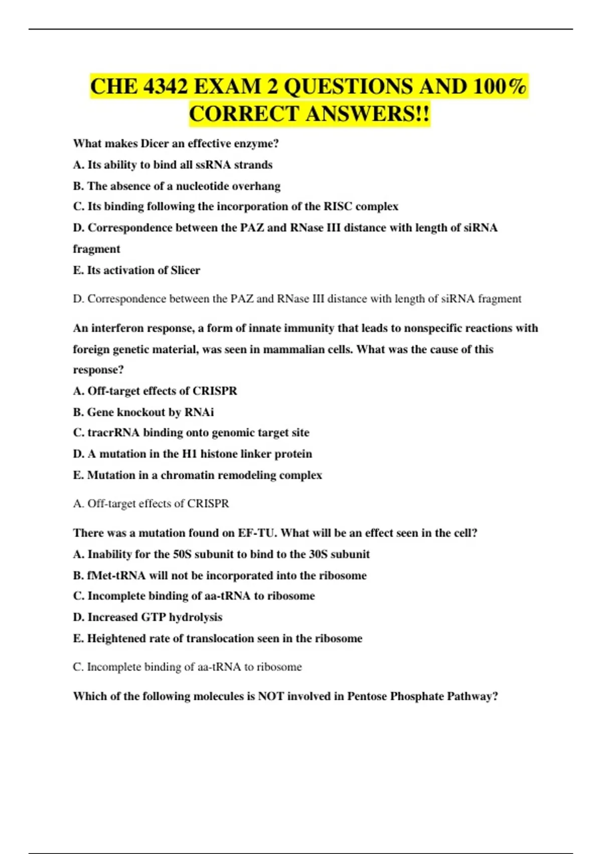 CHE 4342 EXAM 2 QUESTIONS AND 100% CORRECT ANSWERS