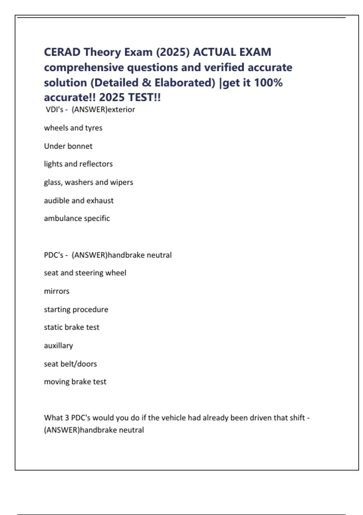 CERAD Theory Exam (2025) ACTUAL EXAM