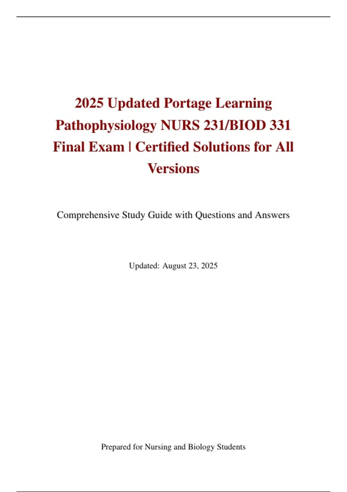 2025 Updated Portage Learning Pathophysiology NURS 231/BIOD 331 Final Exam | Certified Solutions for All Versions