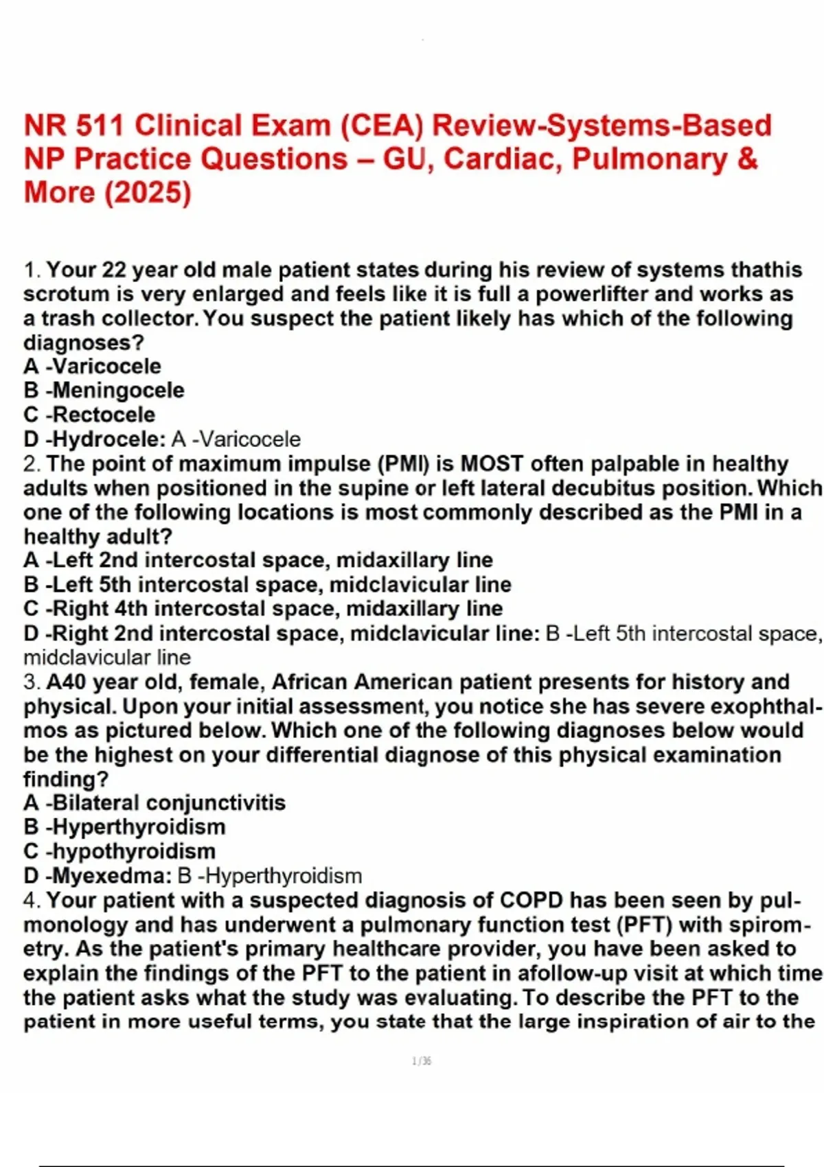 NR 511 Clinical Exam (CEA) Review-Systems-Based NP Practice Questions – GU, Cardiac, Pulmonary & More (2025).pdf