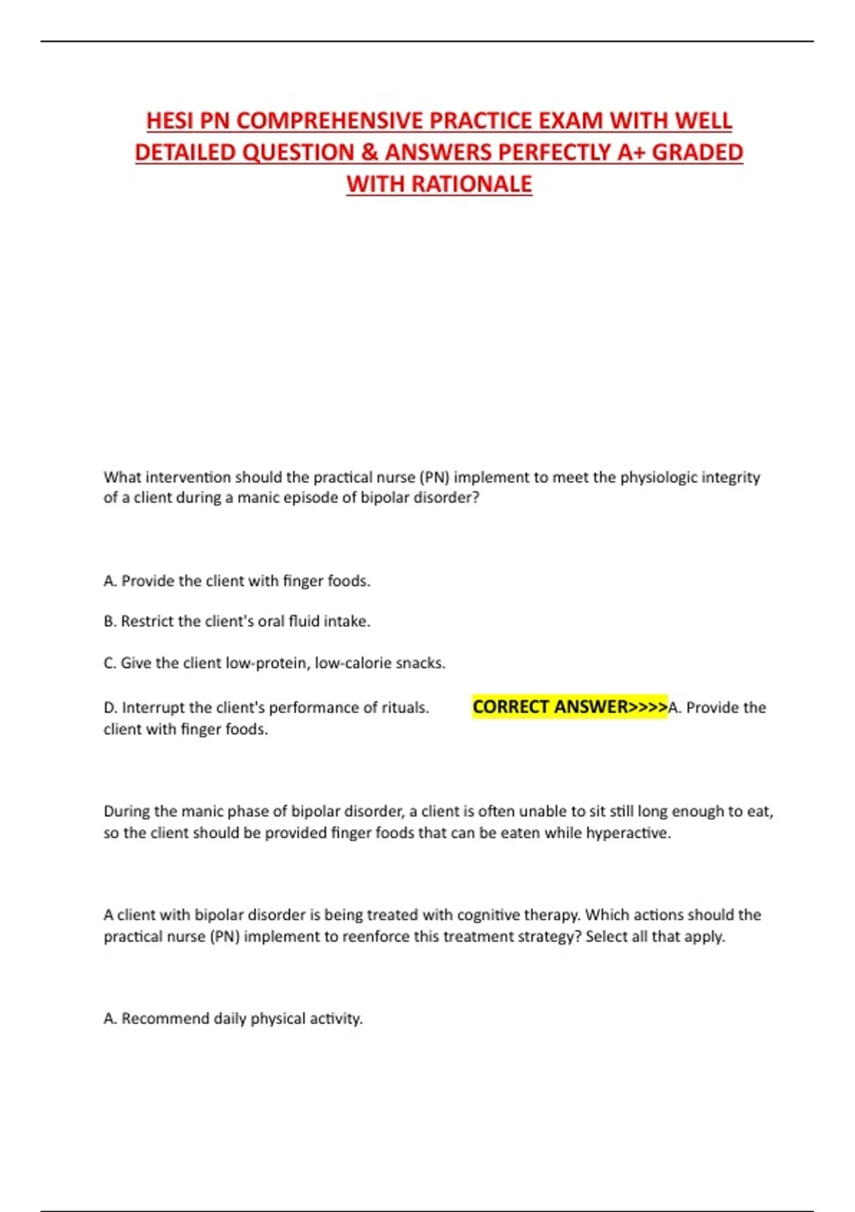 HESI PN COMPREHENSIVE PRACTICE EXAM WITH WELL DETAILED QUESTION & ANSWERS PERFECTLY A+ GRADED WITH RATIONALE HESI PN COMPREHENSIVE PRACTICE EXAM WITH WELL DETAILED QUESTION & ANSWERS PERFECTLY A+ GRADED WITH RATIONALE