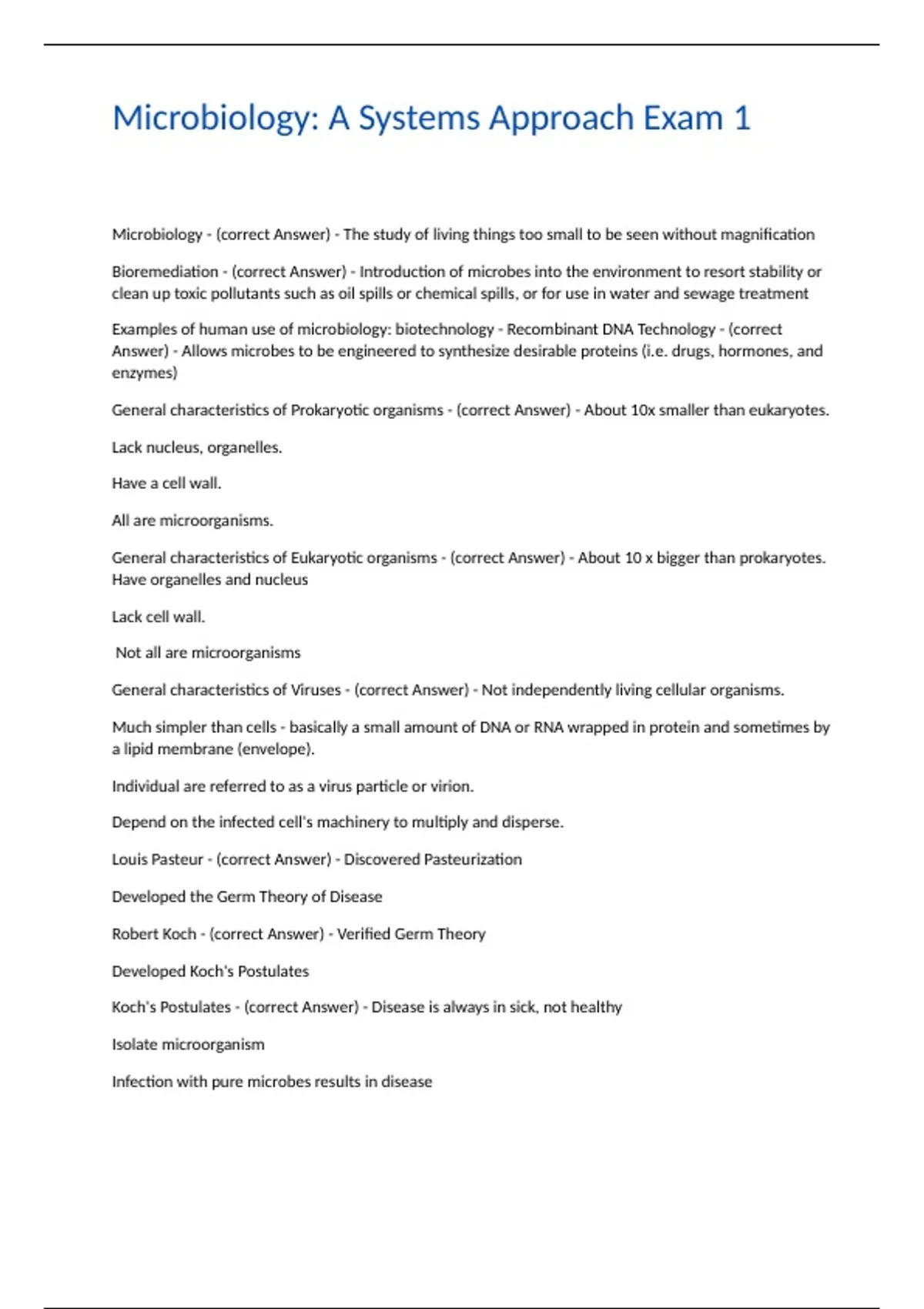 Microbiology: A Systems Approach Exam 1