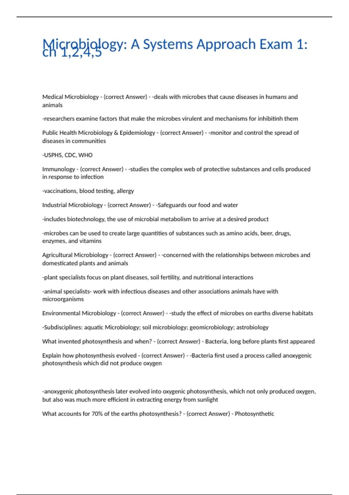 Explain how photosynthesis evolved - (correct Answer) - -Bacteria first used a process called anoxygenic