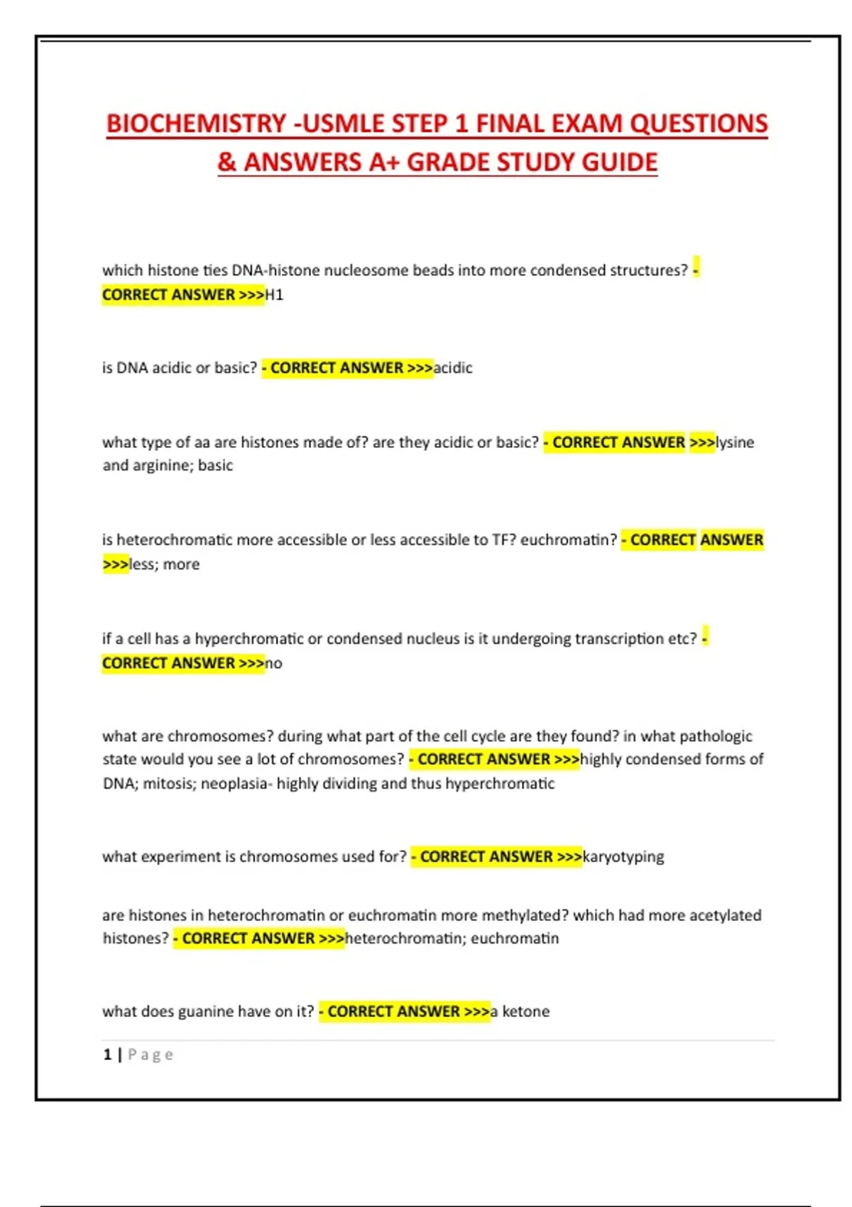BIOCHEMISTRY -USMLE STEP 1 FINAL EXAM QUESTIONS