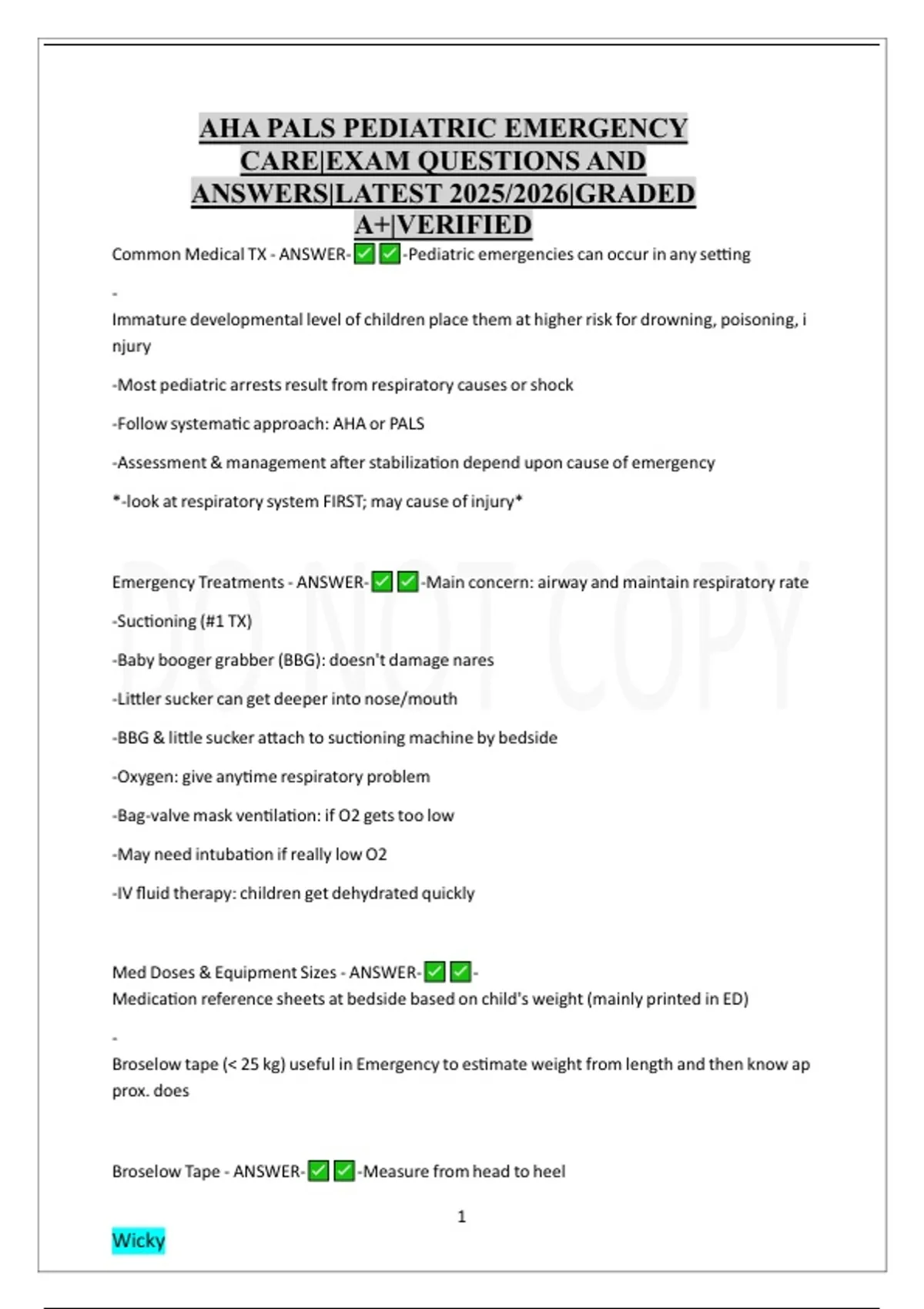 Common Medical TX - ANSWER- B B B B -Pediatric emergencies can occur in any setting