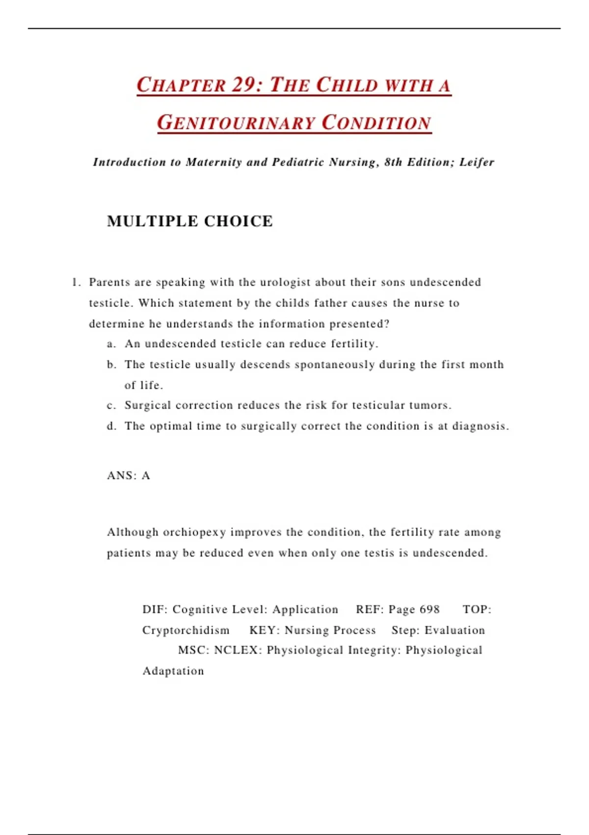 Cryptorchidism KEY: Nursing Process Step: Evaluation