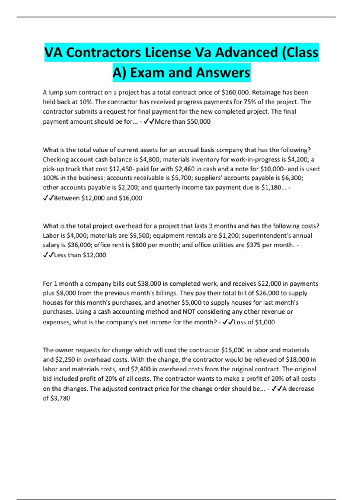 VA Contractors License Va Advanced (Class A) Exam and Answers