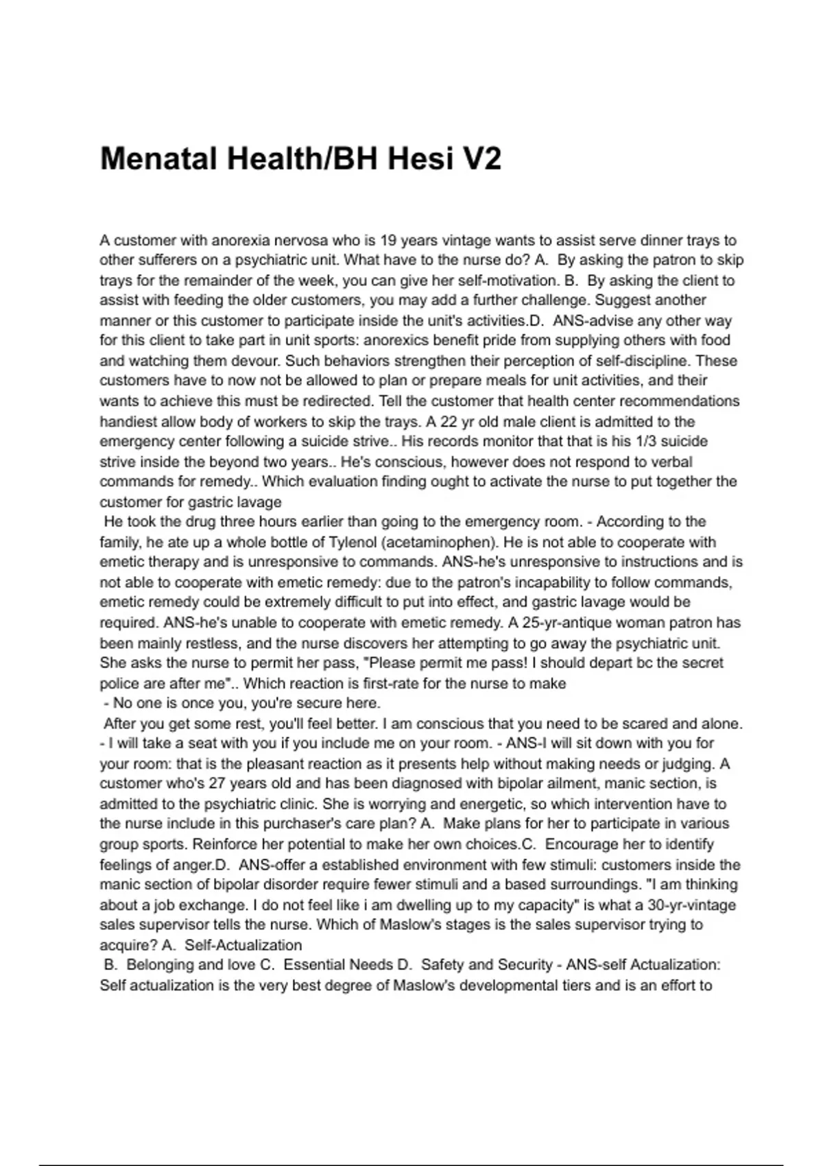 Menatal Health/BH Hesi V2