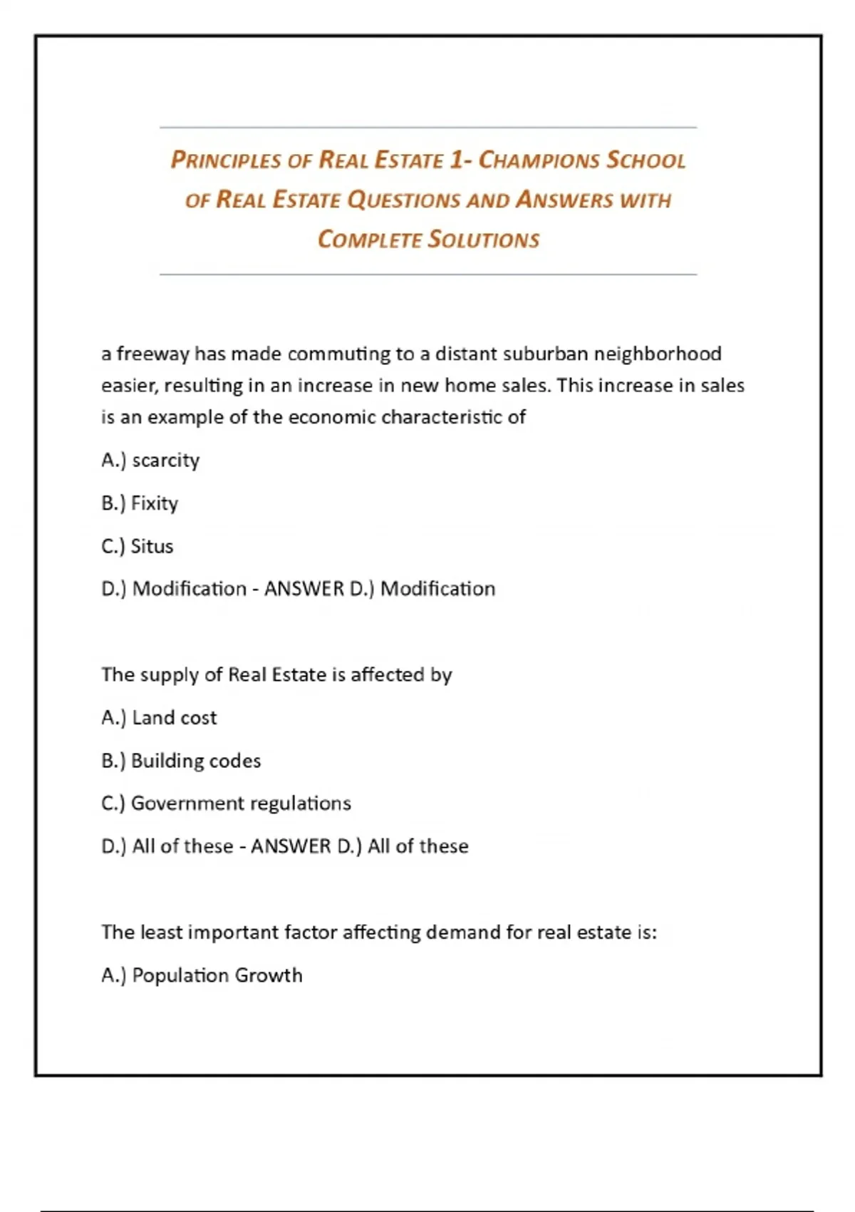 PRINCIPLES OF REAL ESTATE 1- CHAMPIONS SCHOOL OF REAL ESTATE QUESTIONS AND ANSWERS WITH COMPLETE SOLUTIONS